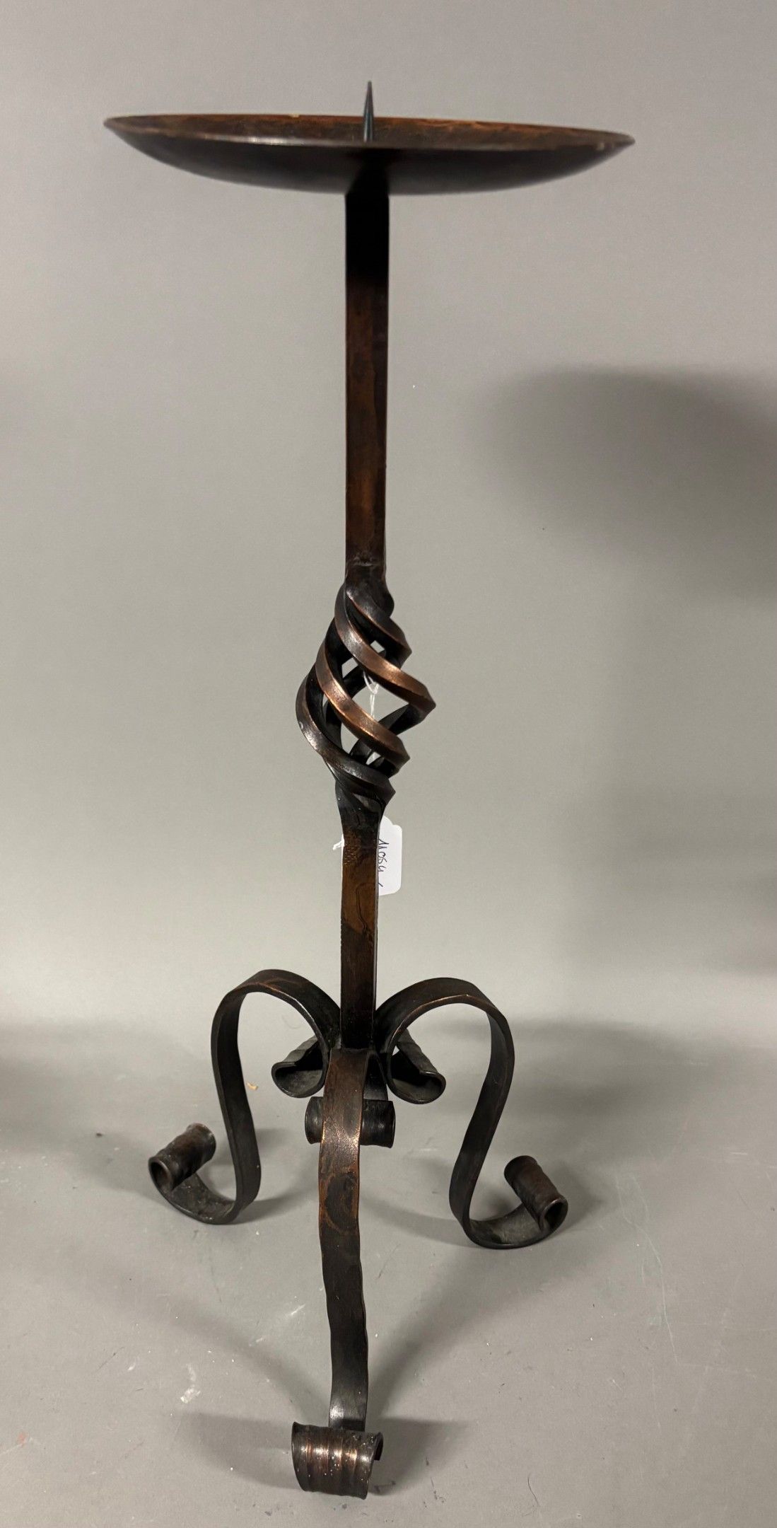 Twisted black patinated copper PIQUE-CIERGE. Tripod base. Height 55 cm. Weight 1.9 kg