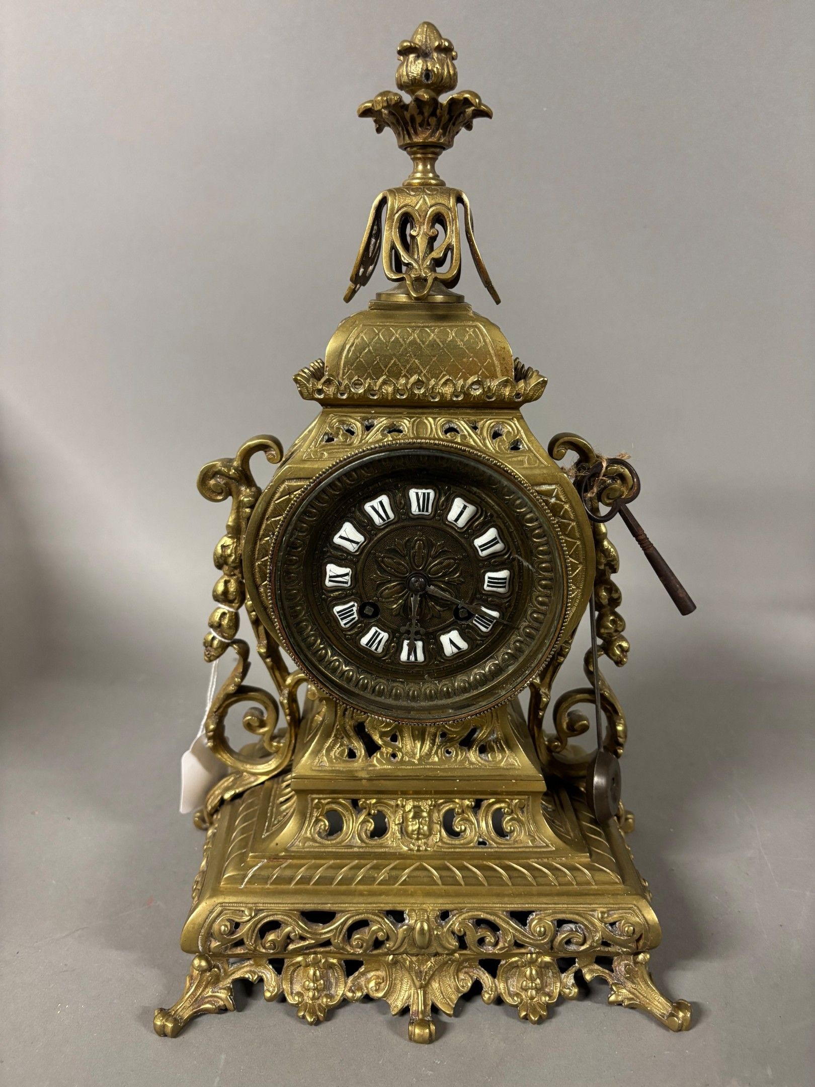 CLOCK. Brass dial with 12 white enamel cartouches, Roman numerals for the hours. Louis XV style hands. 2 winding squares.
