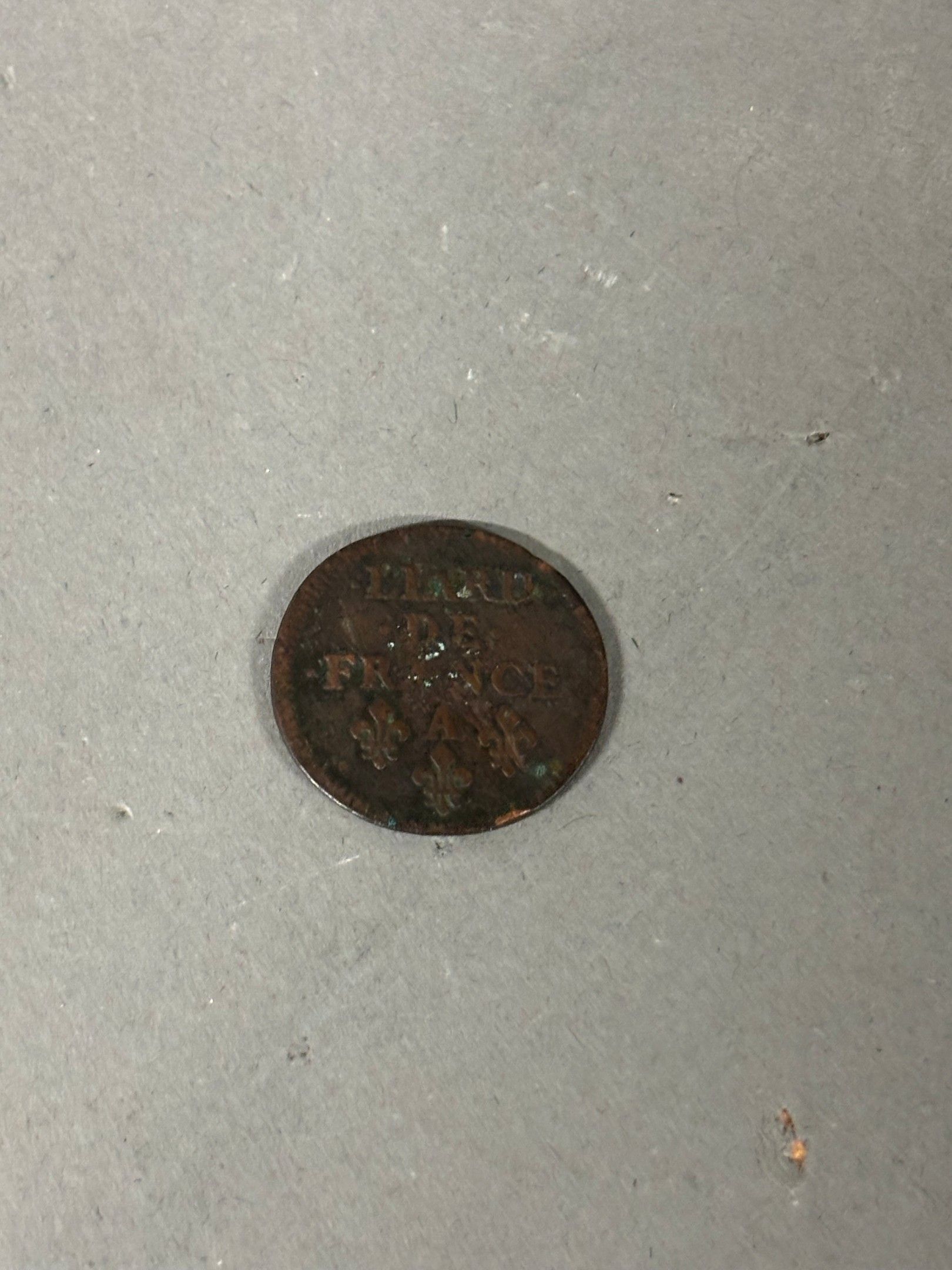 PIECE in copper, liard of France. Obverse Louis XIII crowned head to the left, "LXIII Roy de Fr et de na 16...". - Reverse Liard de France, workshop A trois fleur de lys. TTB