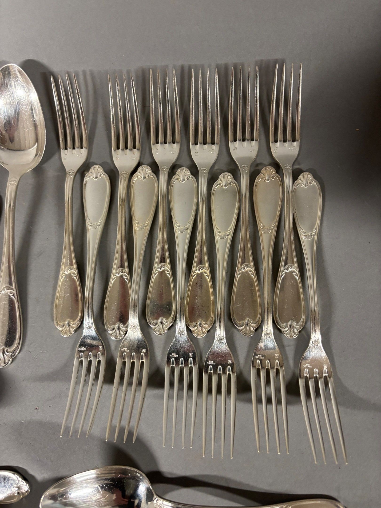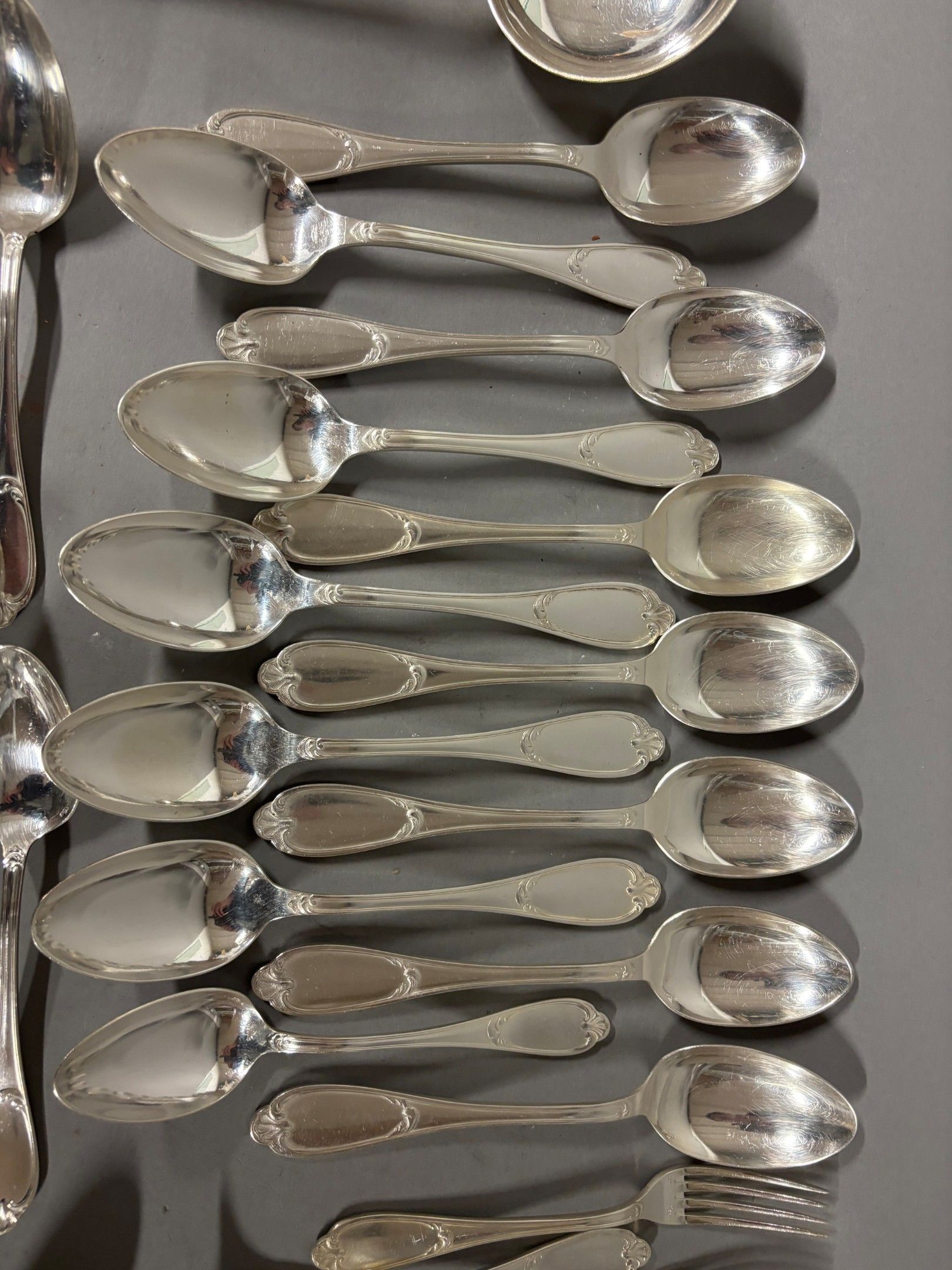 ERCUIS. Set of silver plated cutlery, 12 whisks, 12 soup spo…