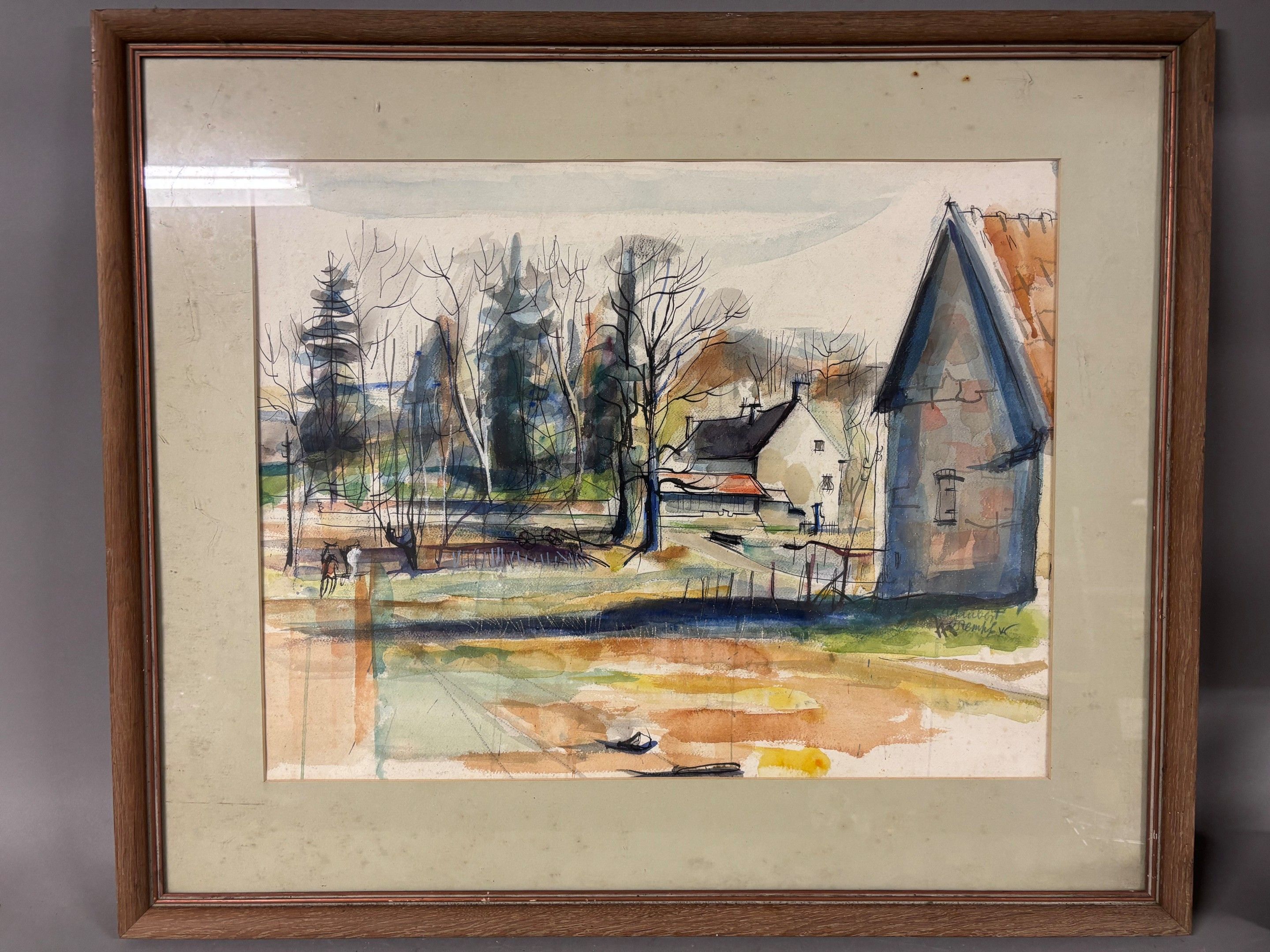 ROLAND F.E GAUBERT (1914-1997). View of a village. Watercolour signed. 46 x 59 cm. Framed under glass.