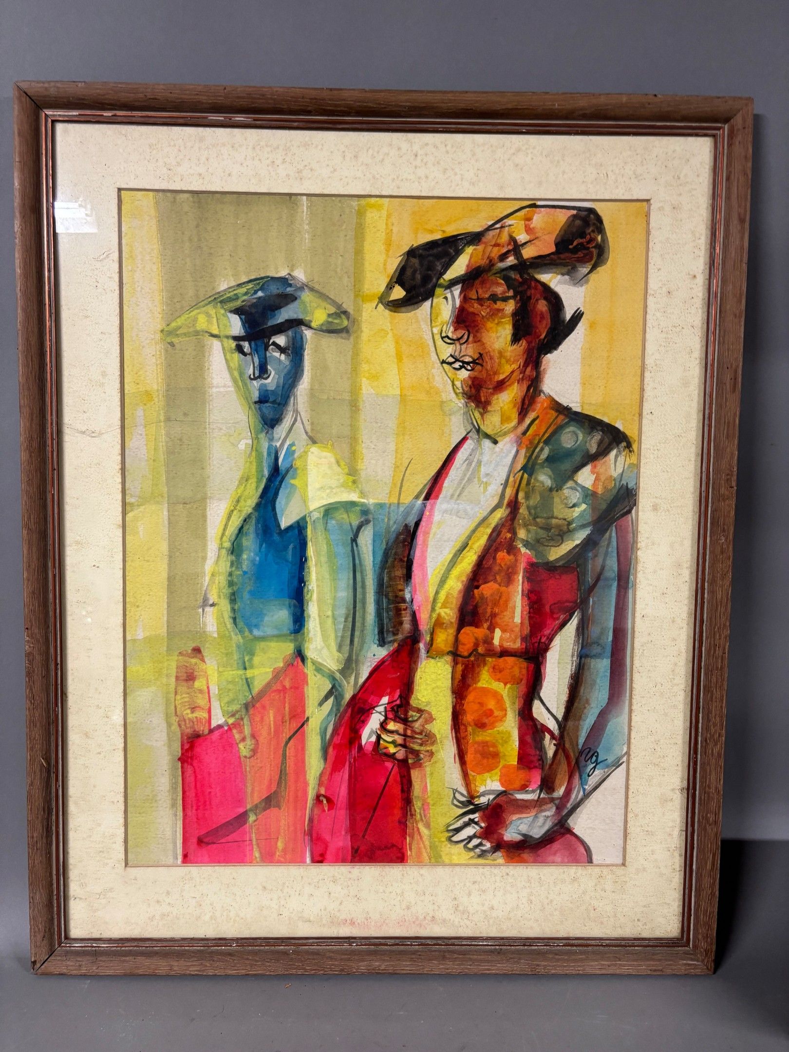 ROLAND F.E GAUBERT (1914-1997). Two bullfighters. Watercolour signed lower right. 63 x 48 cm. Framed under glass.
