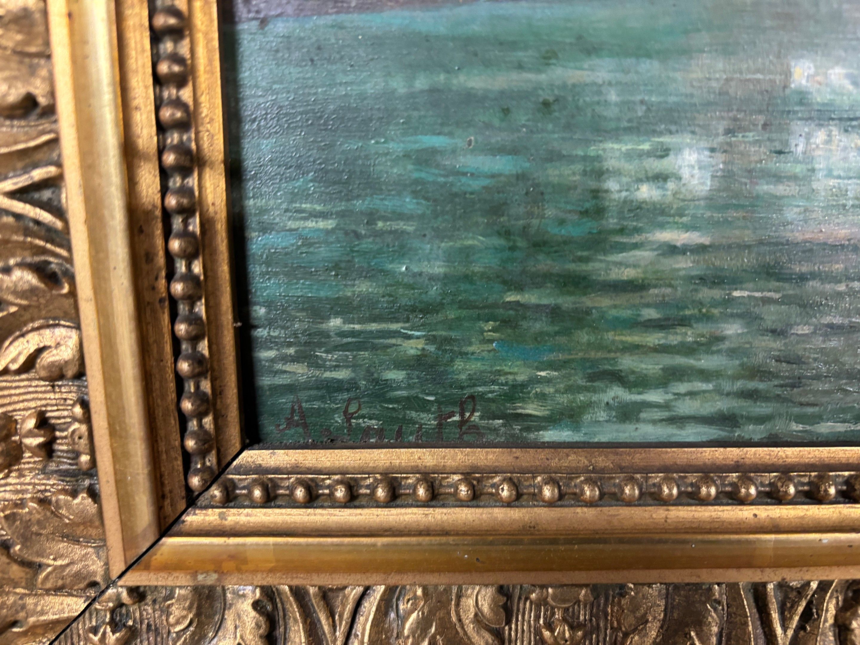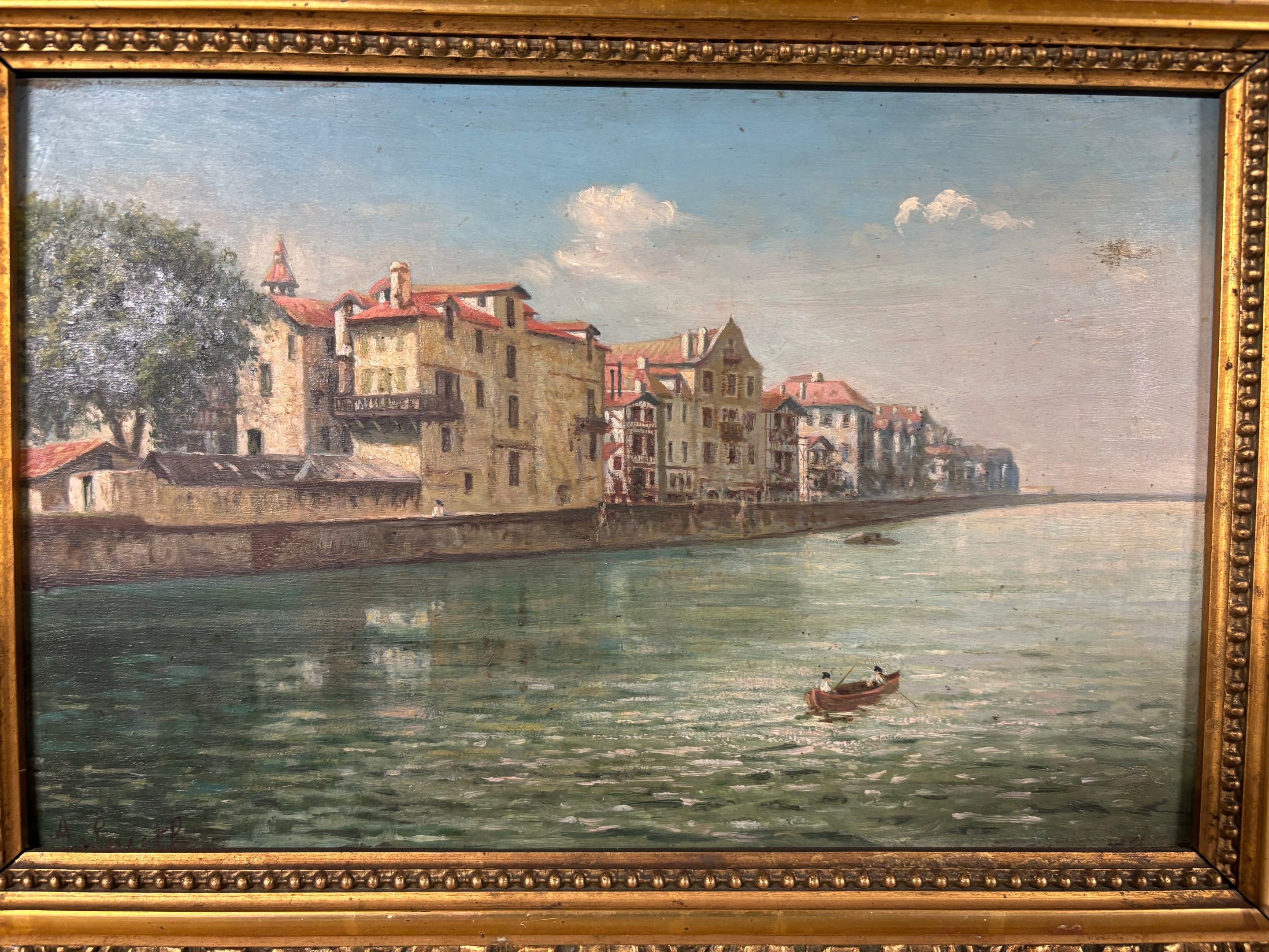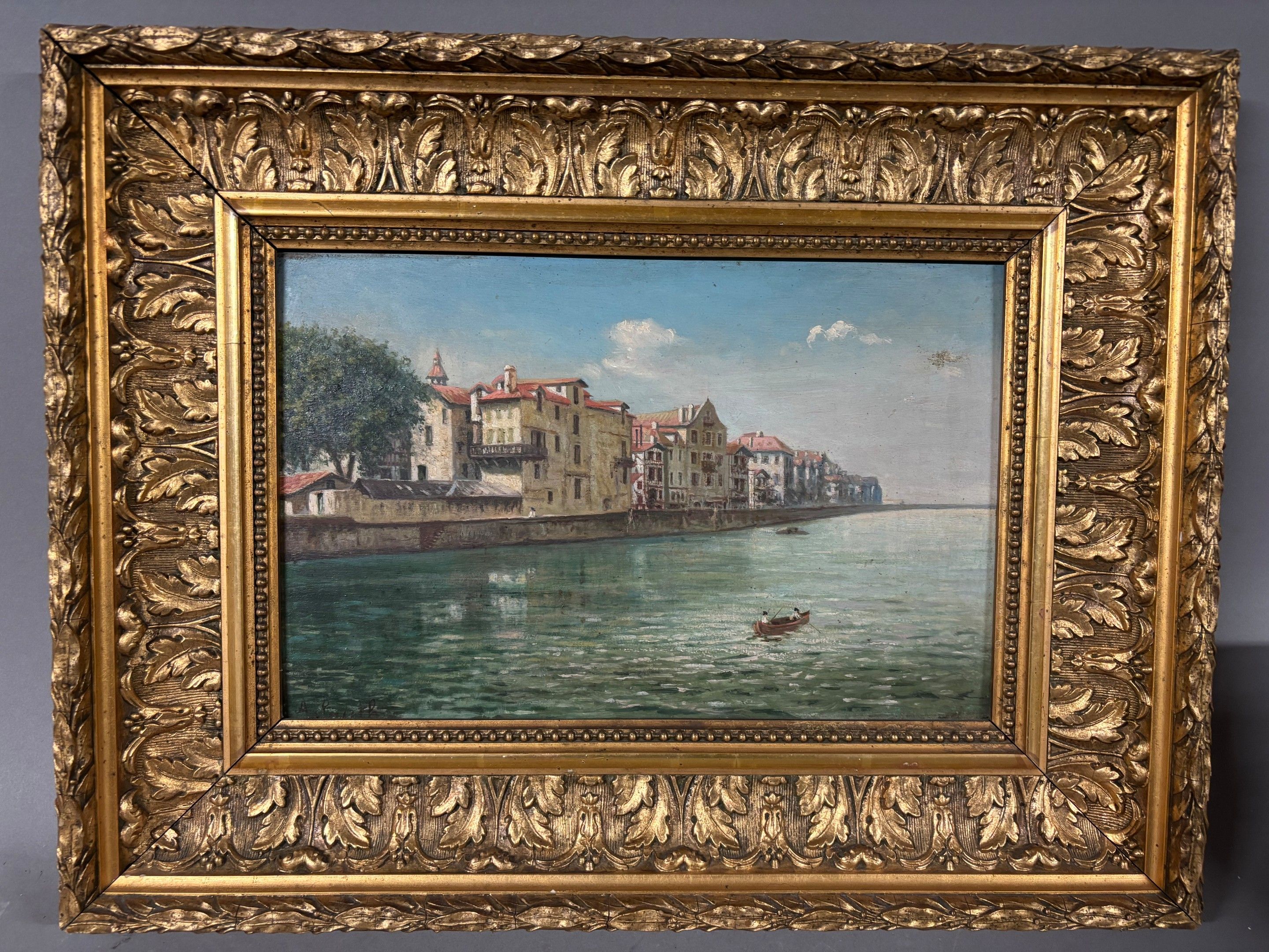 A. LAUTH. Saint Jean de Luz. Oil on panel, signed lower left, titled on the back and dated 1901. 22 x 33 cm. Gilt frame.