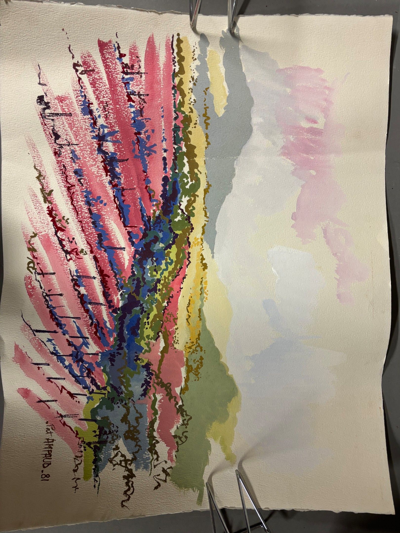 Pat AMPAUD (20th). Vines in Burgundy. Gouache on BFK Rives paper signed lower right and dated 81. 50 x 64 cm.