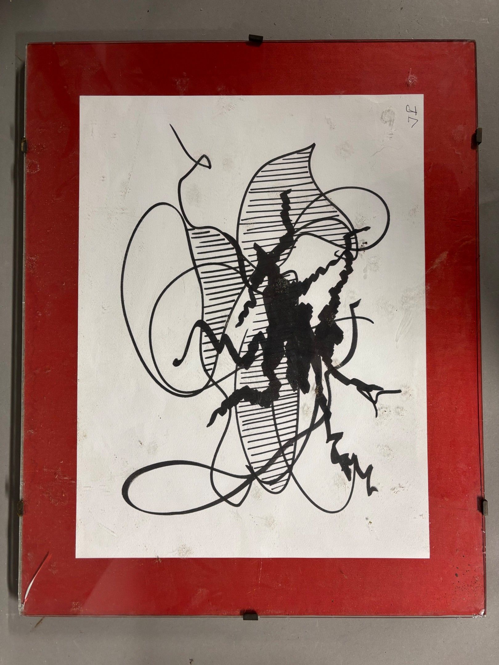 JP (XXE)/ Abstraction. India ink signed lower right. 32 x 43 cm. Framed under glass.