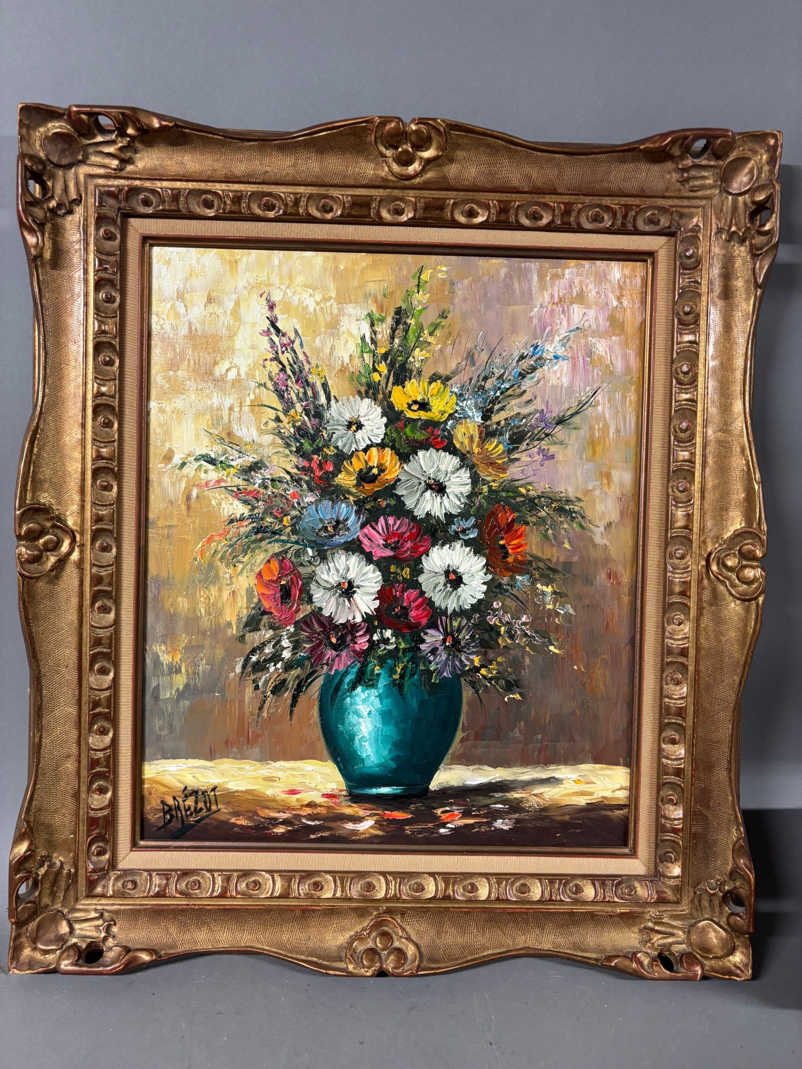 BREZOT (active in the 20th century). Vase of flowers. Oil on canvas signed lower left. 37 x 45 cm. Montparnasse frame.