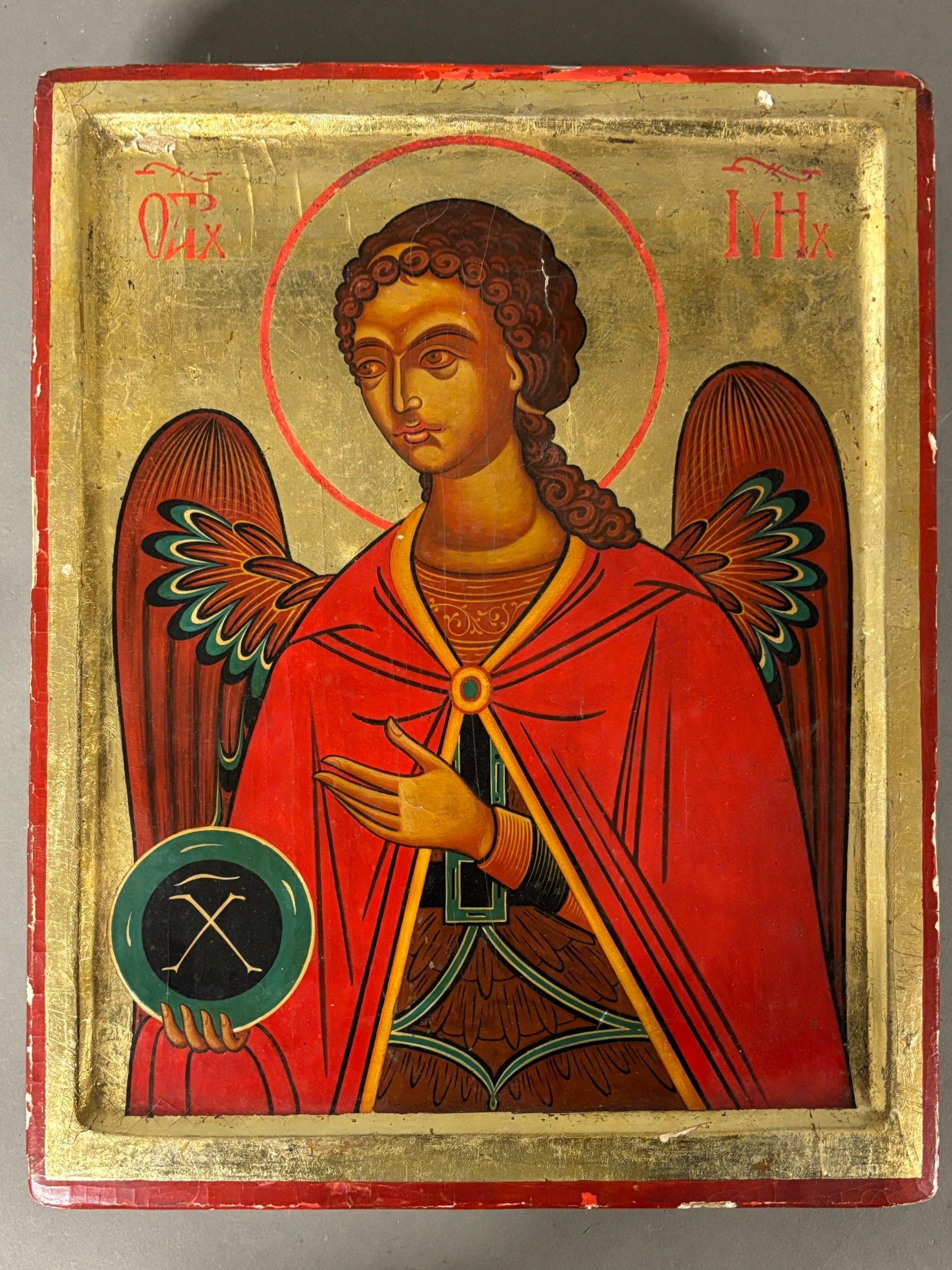 RUSSIA. Archangel. Polychrome on wood. 31 x 25 cm. Wear and tear. 20th century.