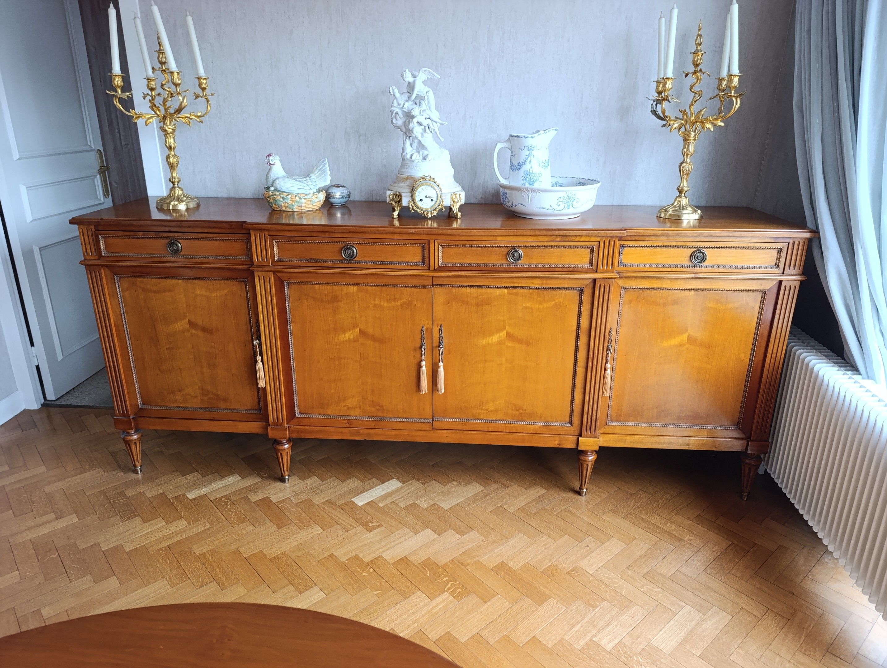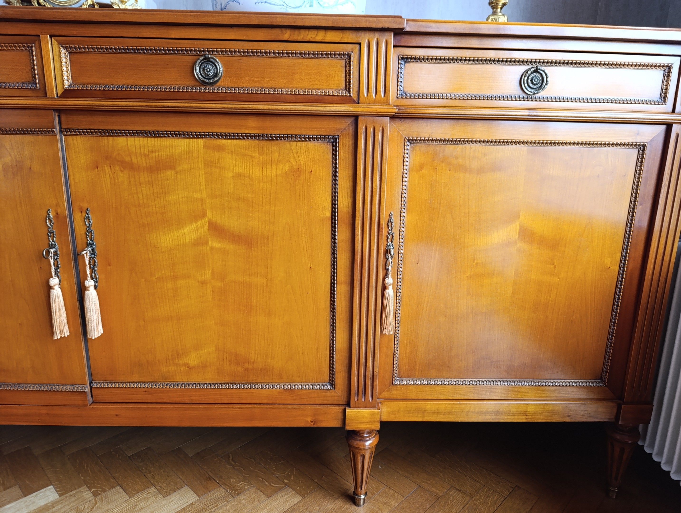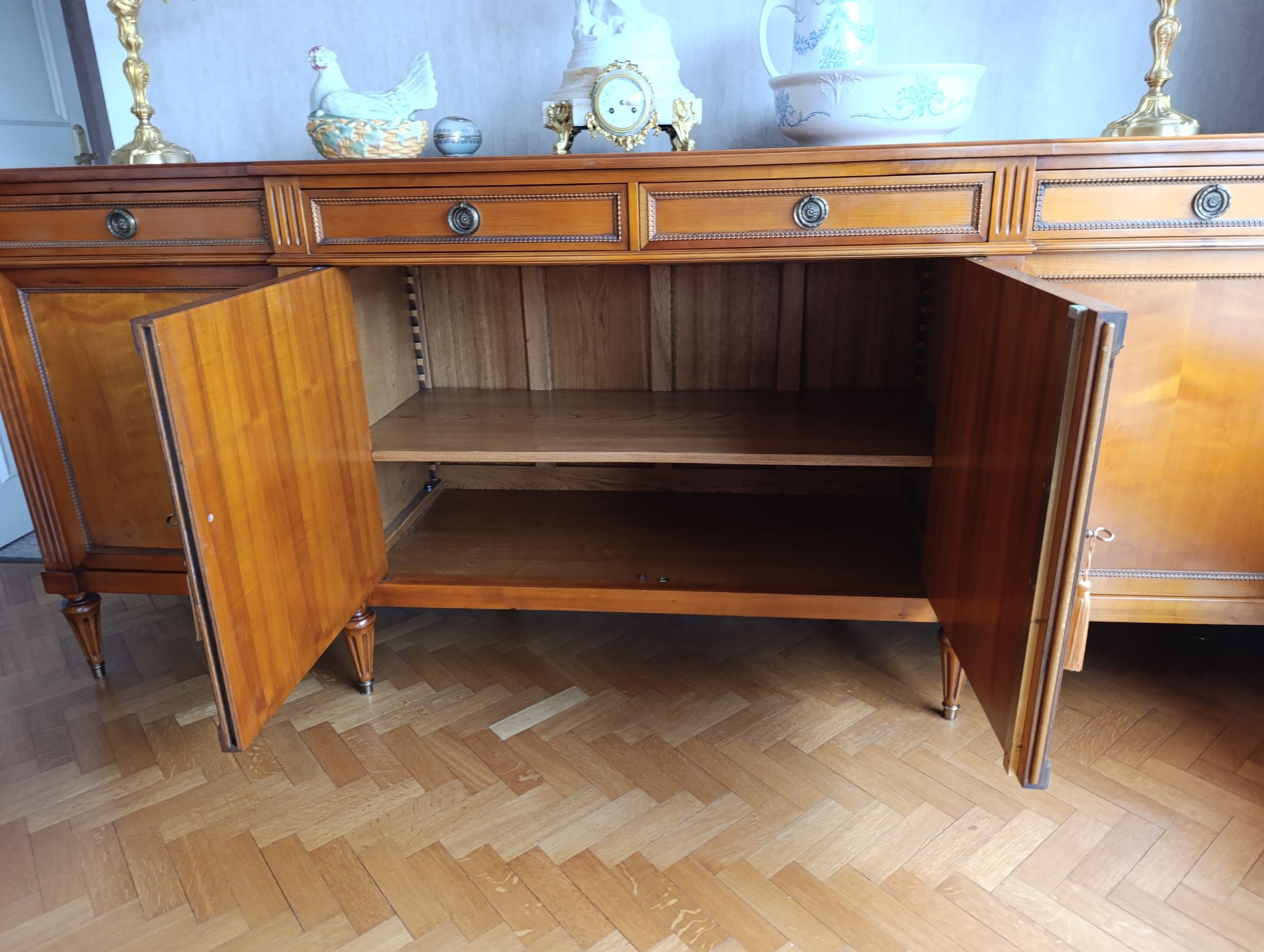 Wooden ENFILADE opening with 4 doors and four drawers, fluted upright. Louis XVI style, 20th century. 100 x 130 x 239 cm.