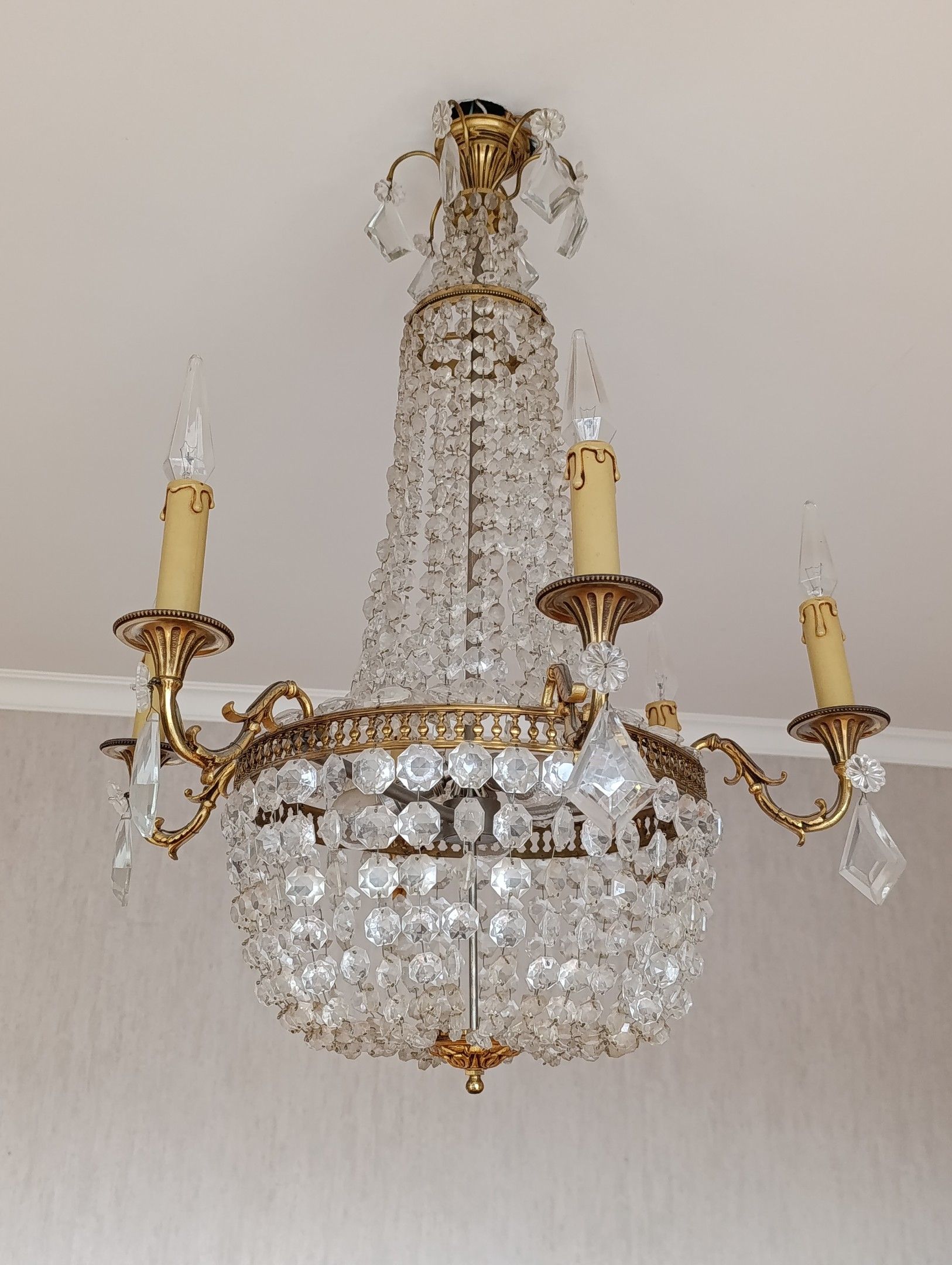MONGOLFIERE LIGHT with six gilded metal lights and pendants.…