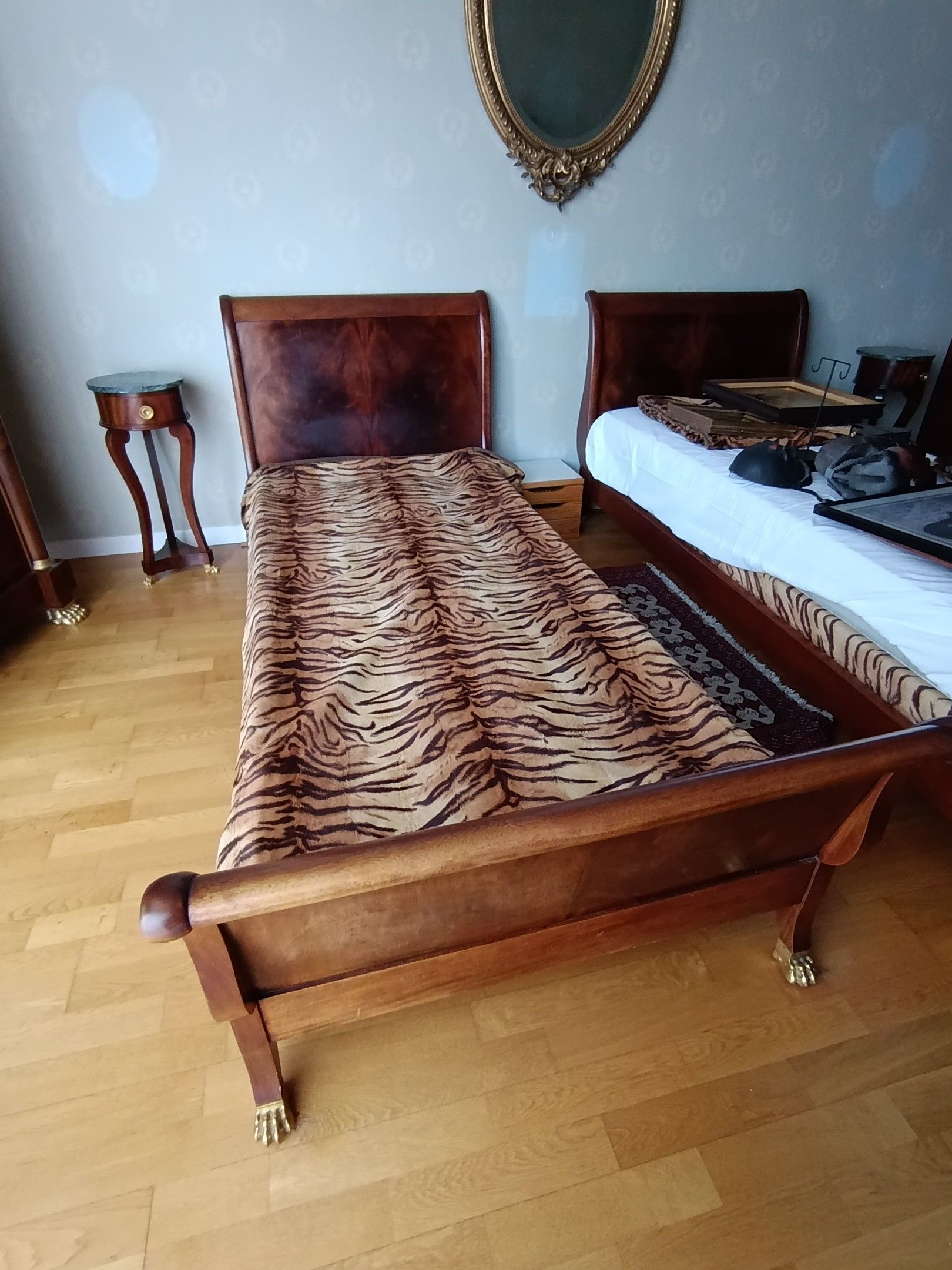 TWO INDIVIDUAL BEDS in mahogany, Empire style.