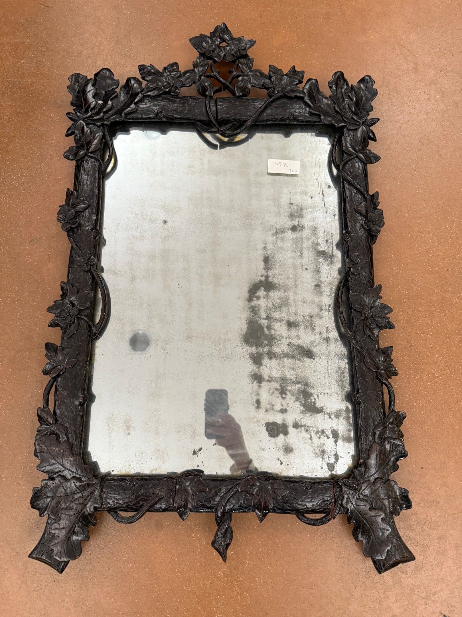 BLACK FOREST. Varnished wood mirror with light relief decoration of leaves. 90 x 55 cm. Very slight damage.