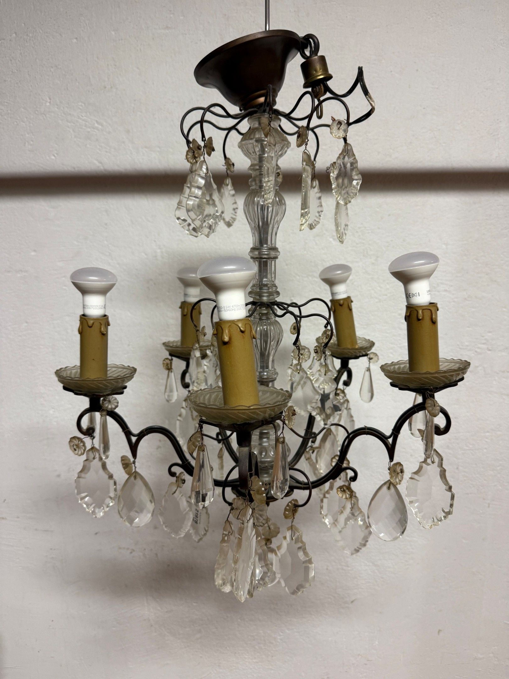 Brass mounted 5-light chandelier. Decorated with flowers.