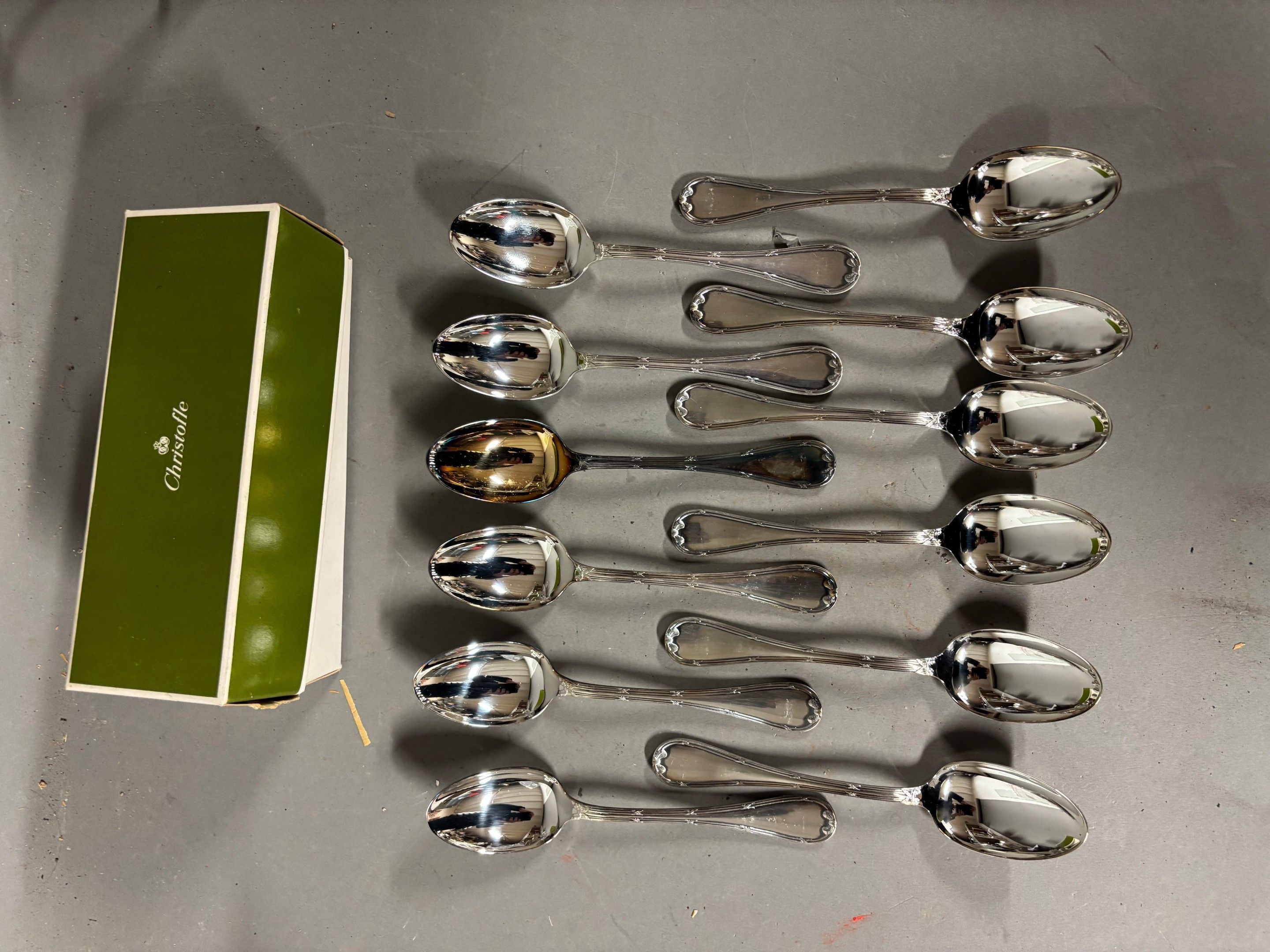 CHRISTOFLE. 12 spoons with crossed ribbons.