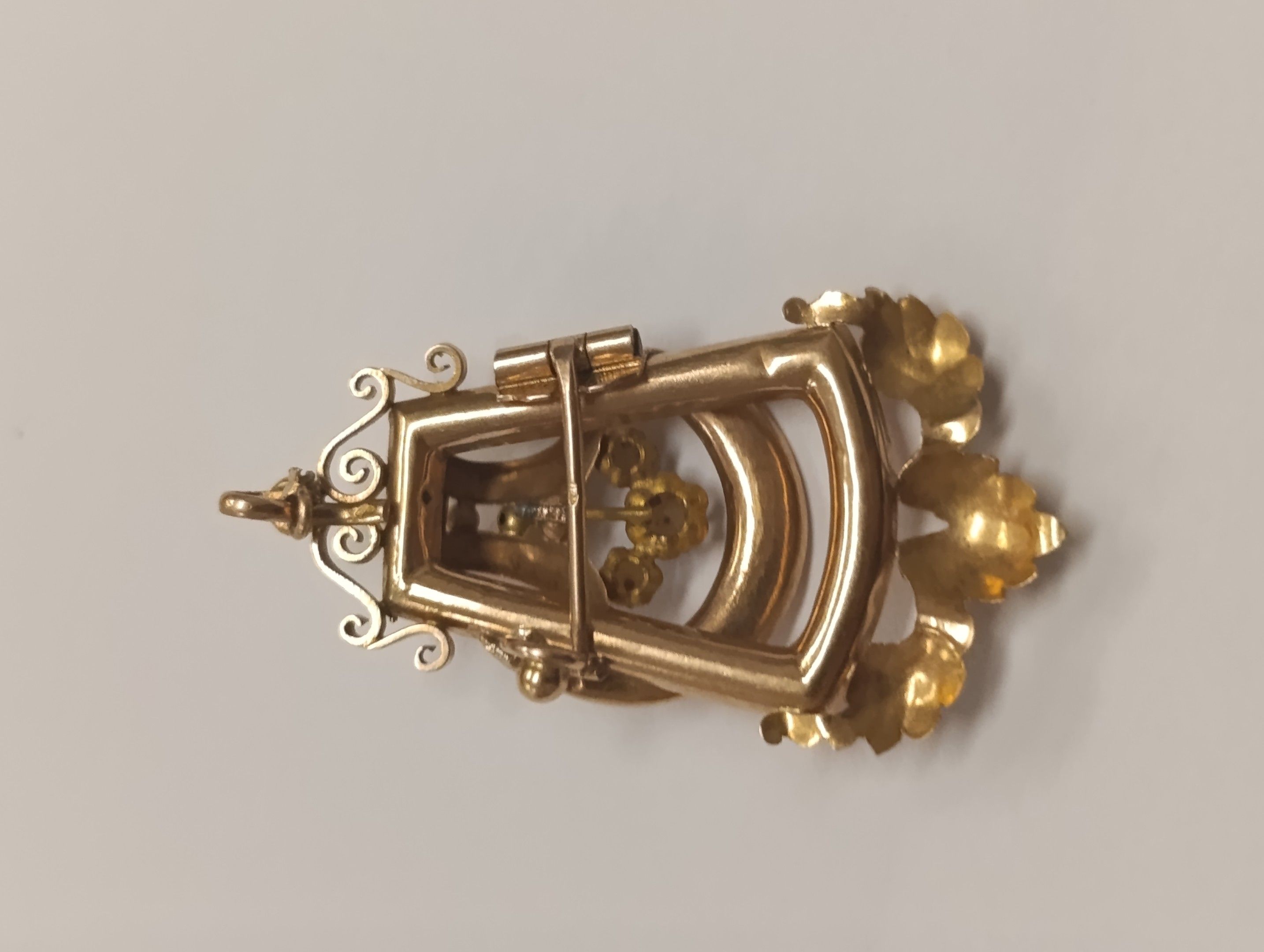 750 thousandth yellow gold and pearls transformable PENDANT. Marked with a horse's head (1838-1919). Height 4.2 cm. Gross weight 4.17 g