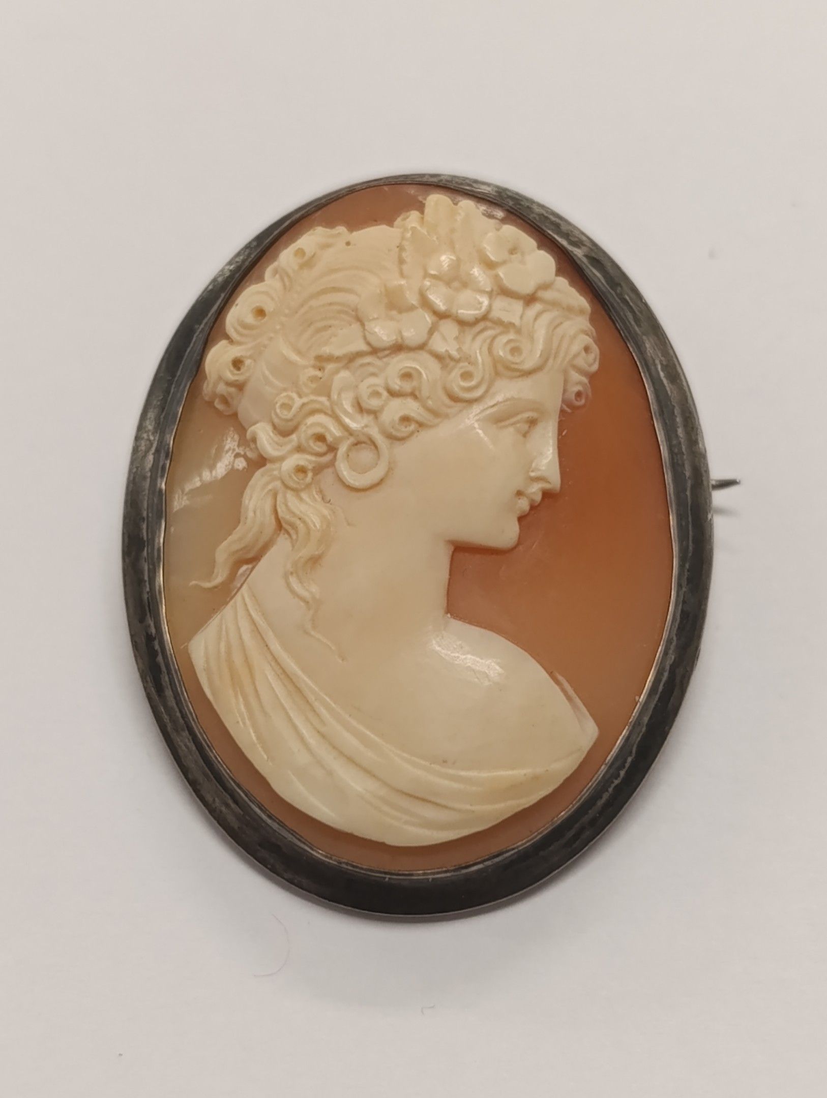 CAMEE SPROCH with a woman's profile, in a silver setting.