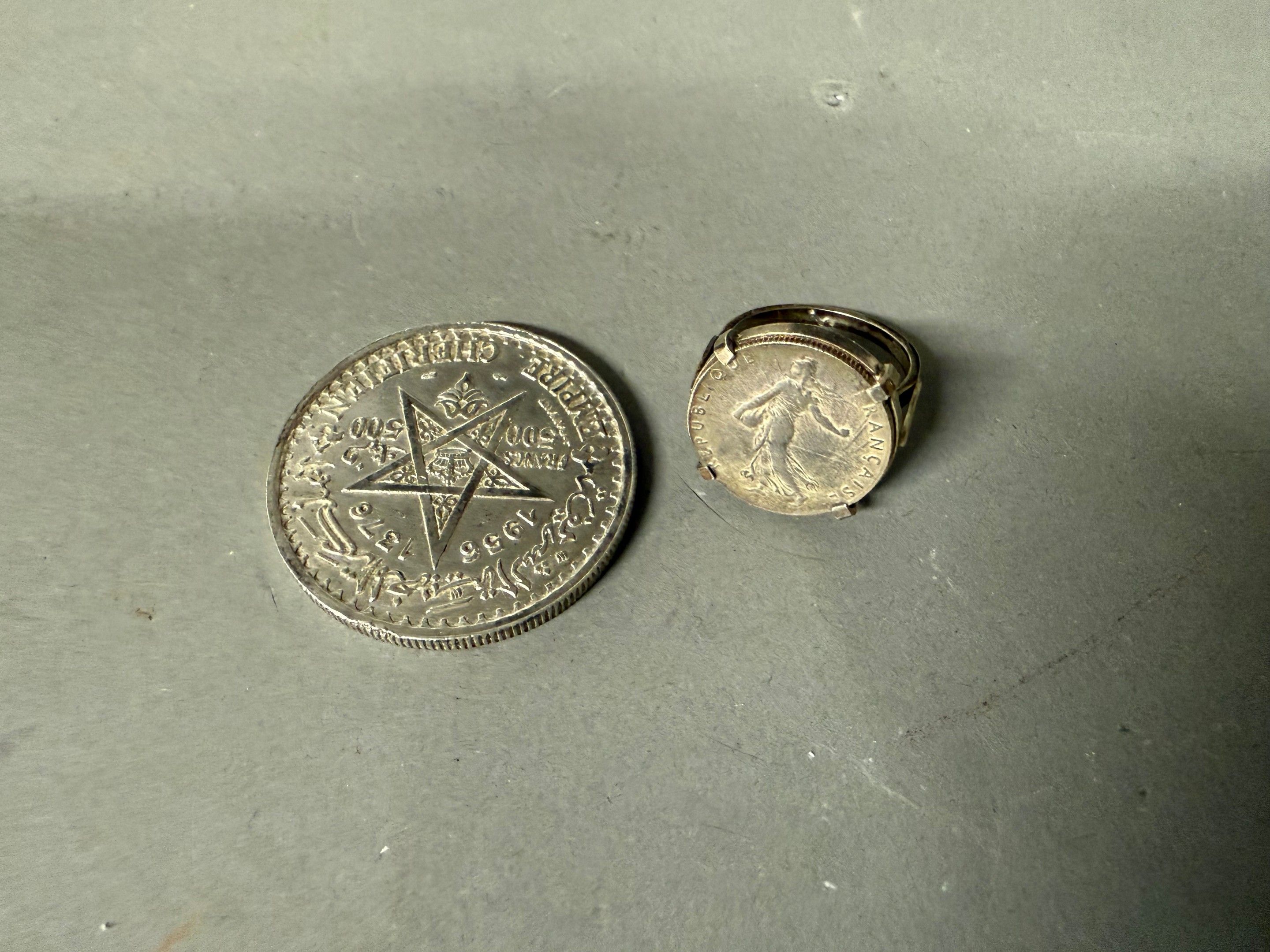 One joined: PIECE of 50 centimes 1915 out of silver taken up in silver ring 800 thousandths, punch crab. Total weight : 5.76 g