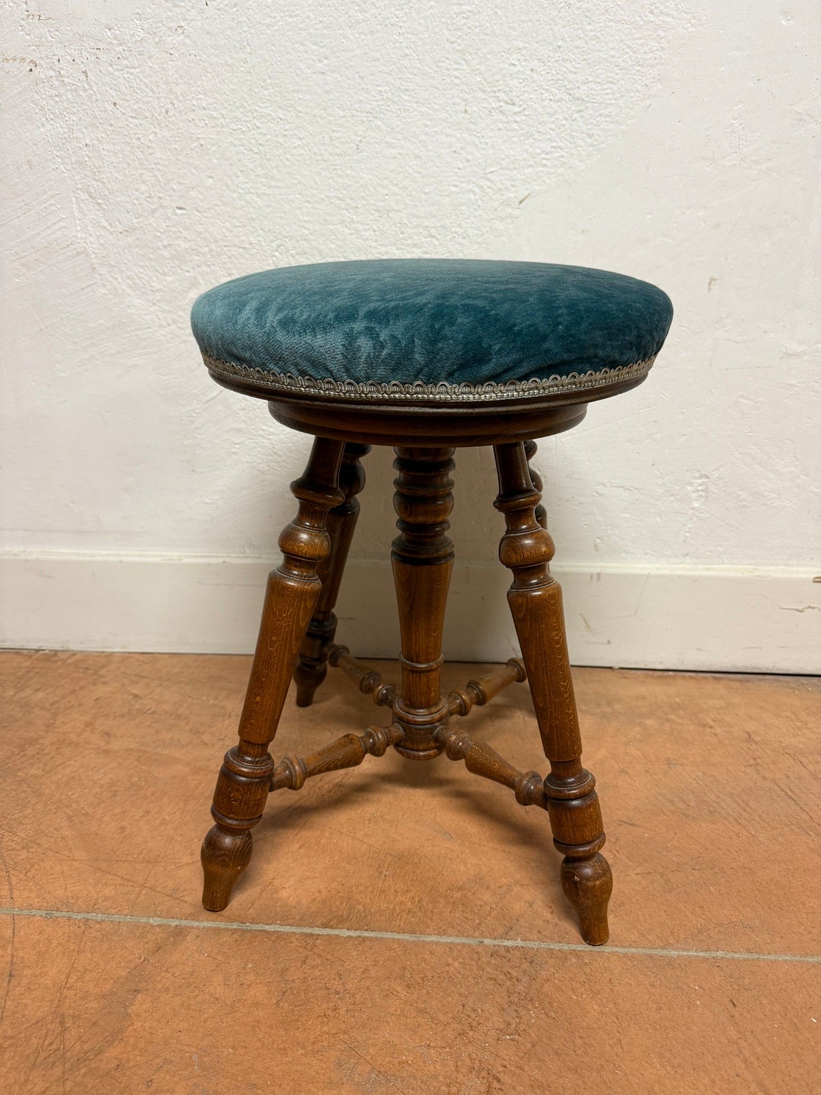 TABOURET in turned wood. Seat on metal screw (adjustable). 4 legs. H 54 D 35 cm.