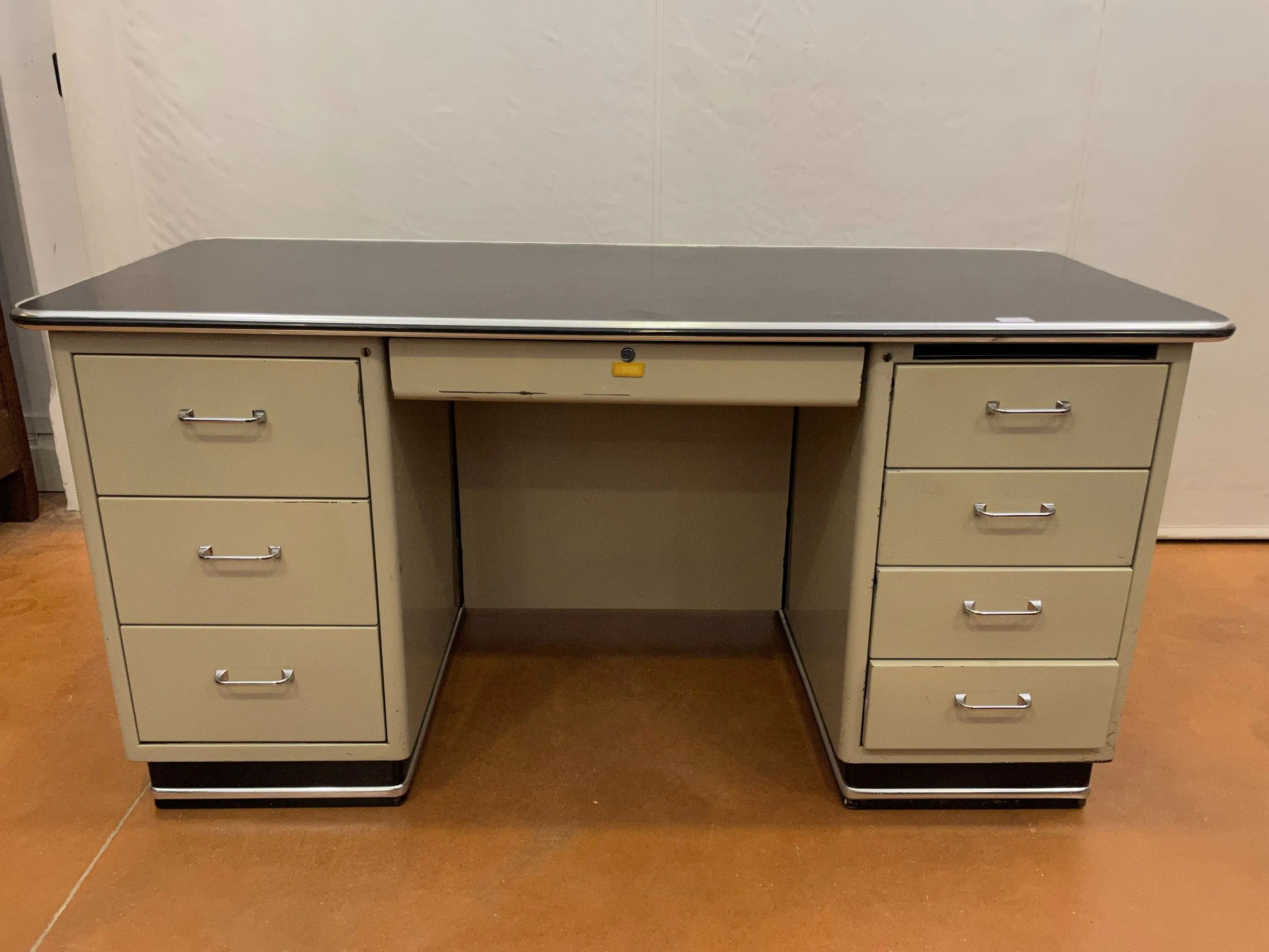 Metal pedestal desk. 50s/60s. 70 x 170 x 85 cm.
