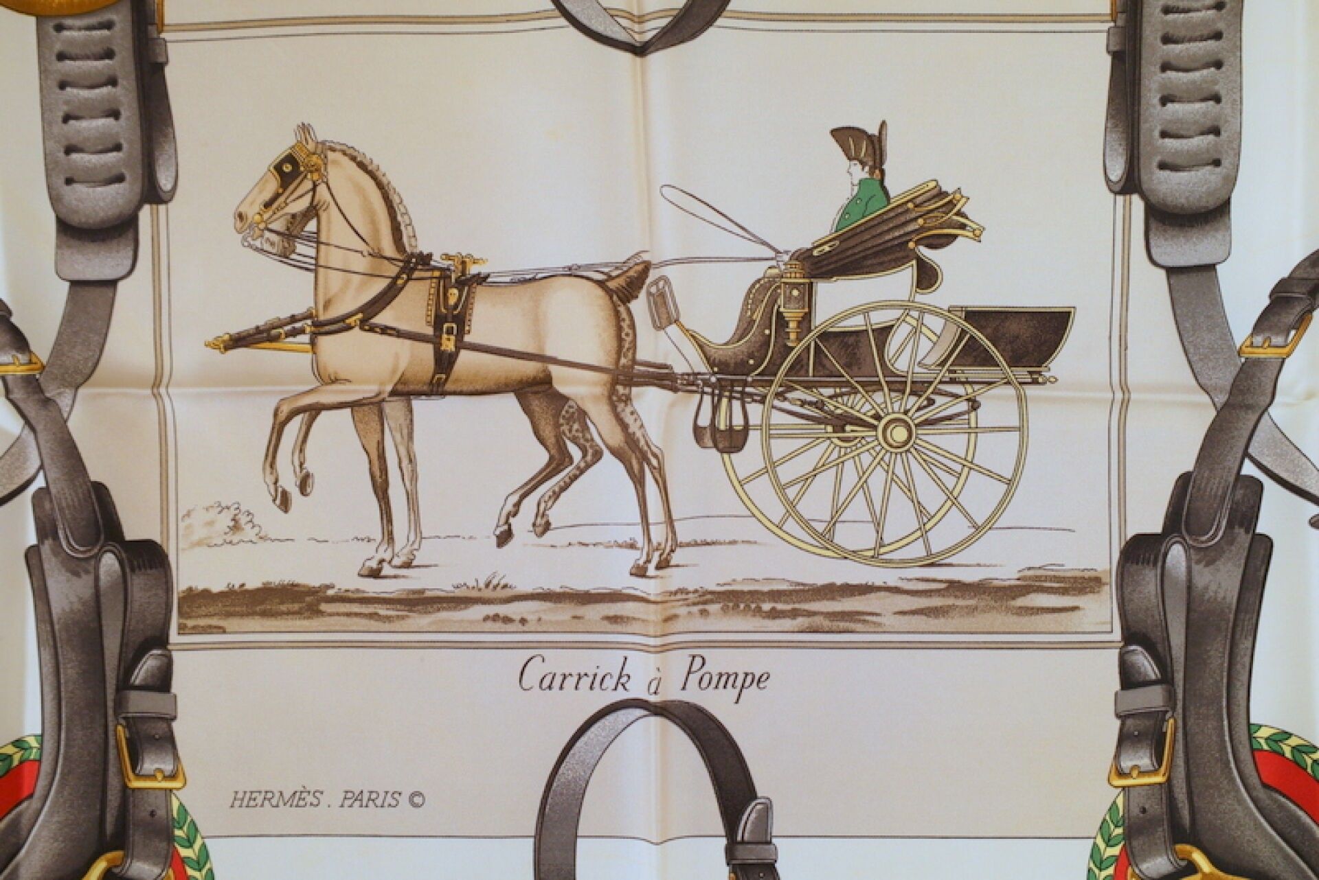 HERMES Paris - Silk square printed and titled "Carrick à pom…