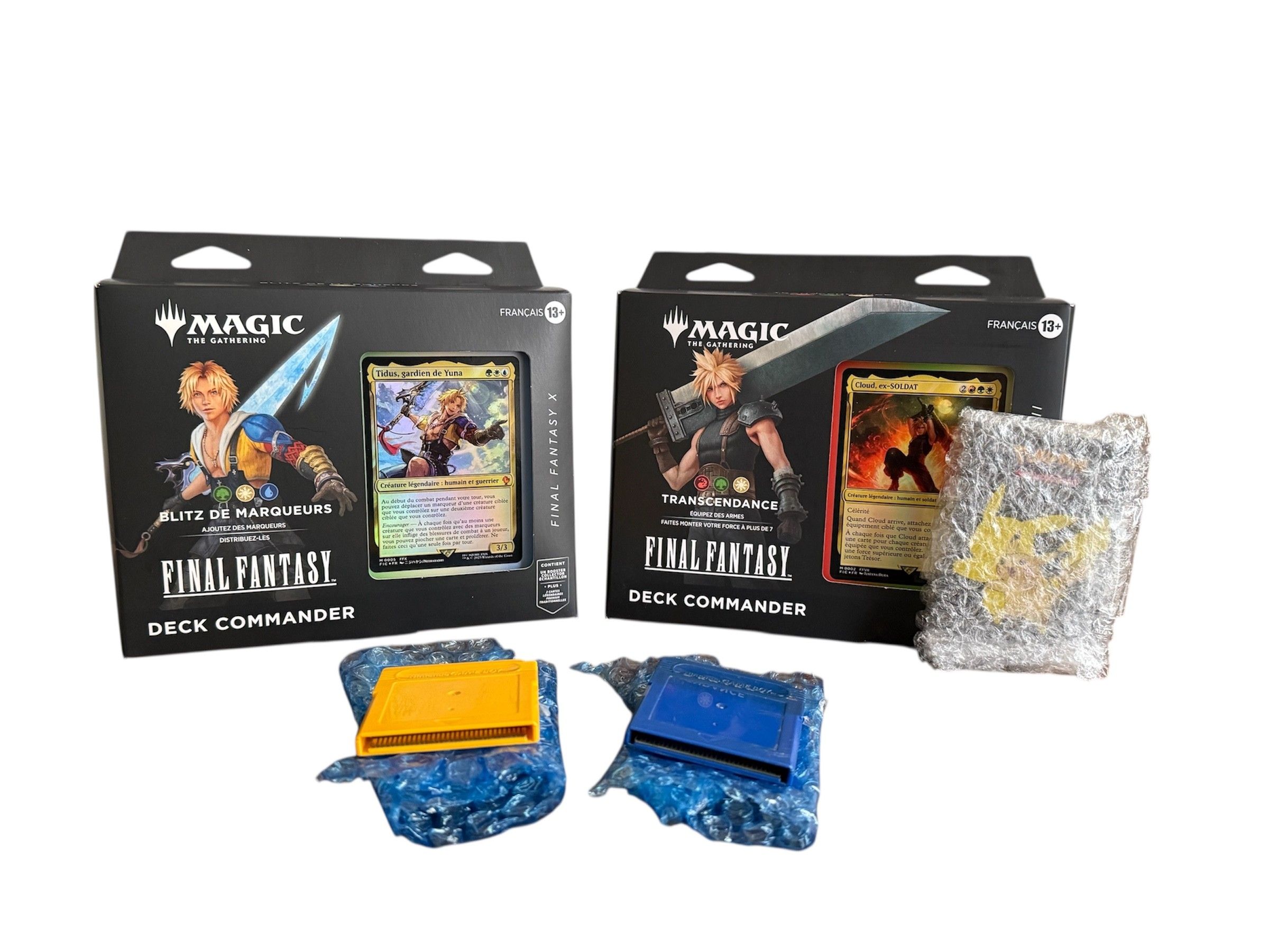 J/ Lot including 2 game boy games, as is with no guarantee of functioning, a pokémon booster and 2 Magic the gathering sets.