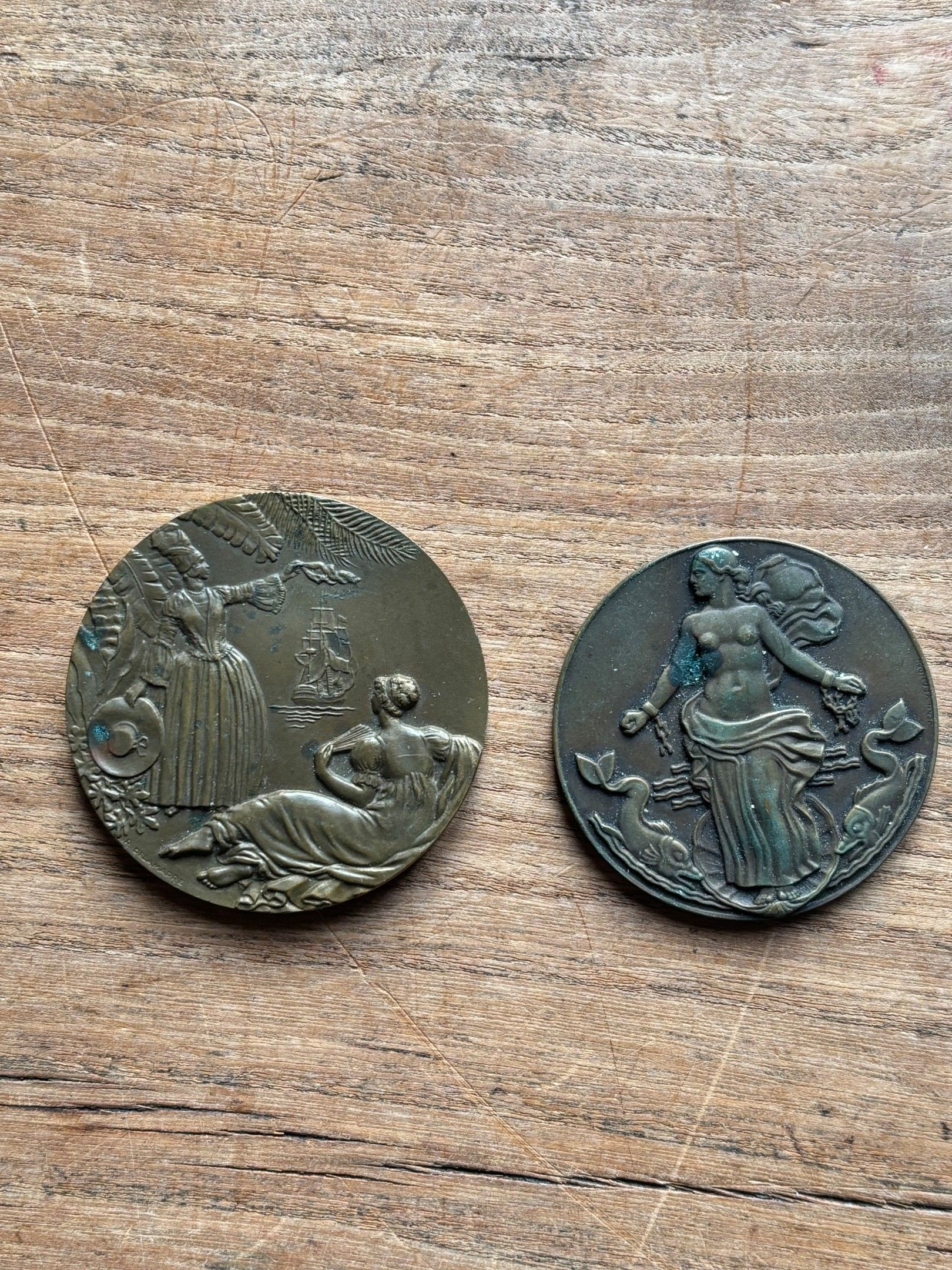 J/ Lot of two bronze medals: - Jean VERNON, "LIBERTE" Le Hav…