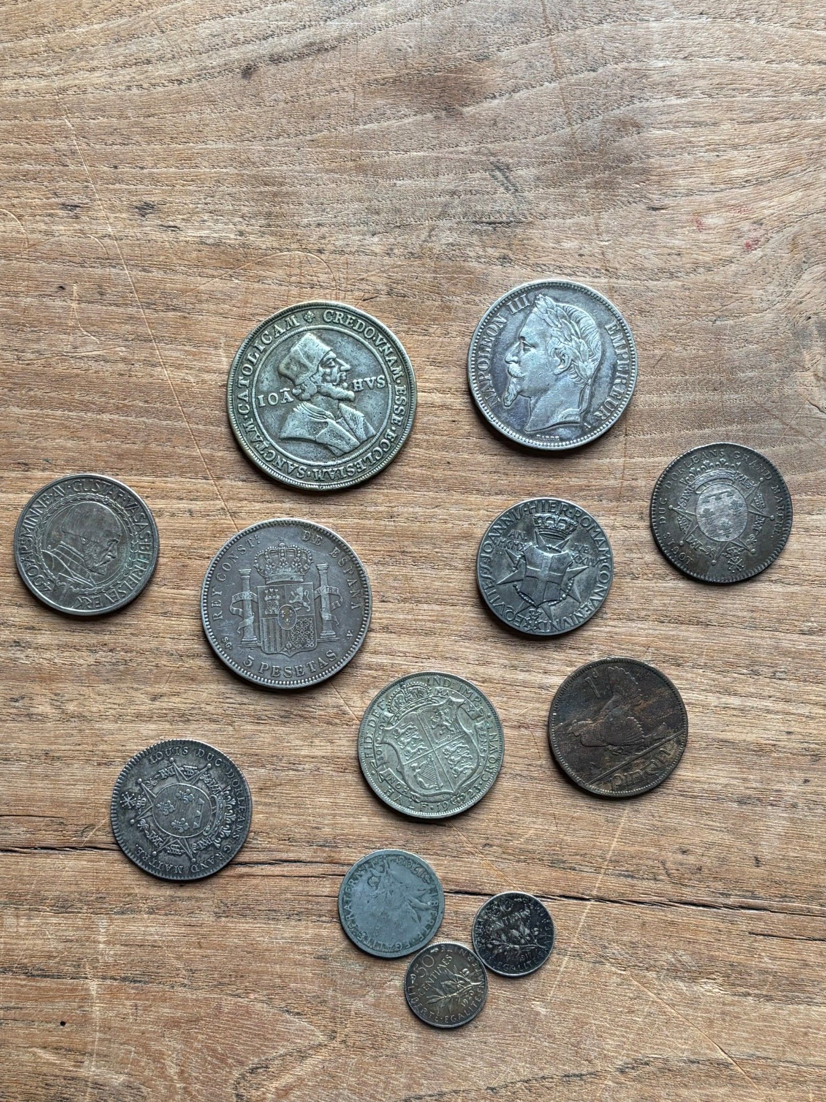 J/ Lot of coins including 5 pesetas of Spain 1898, 5 francs …
