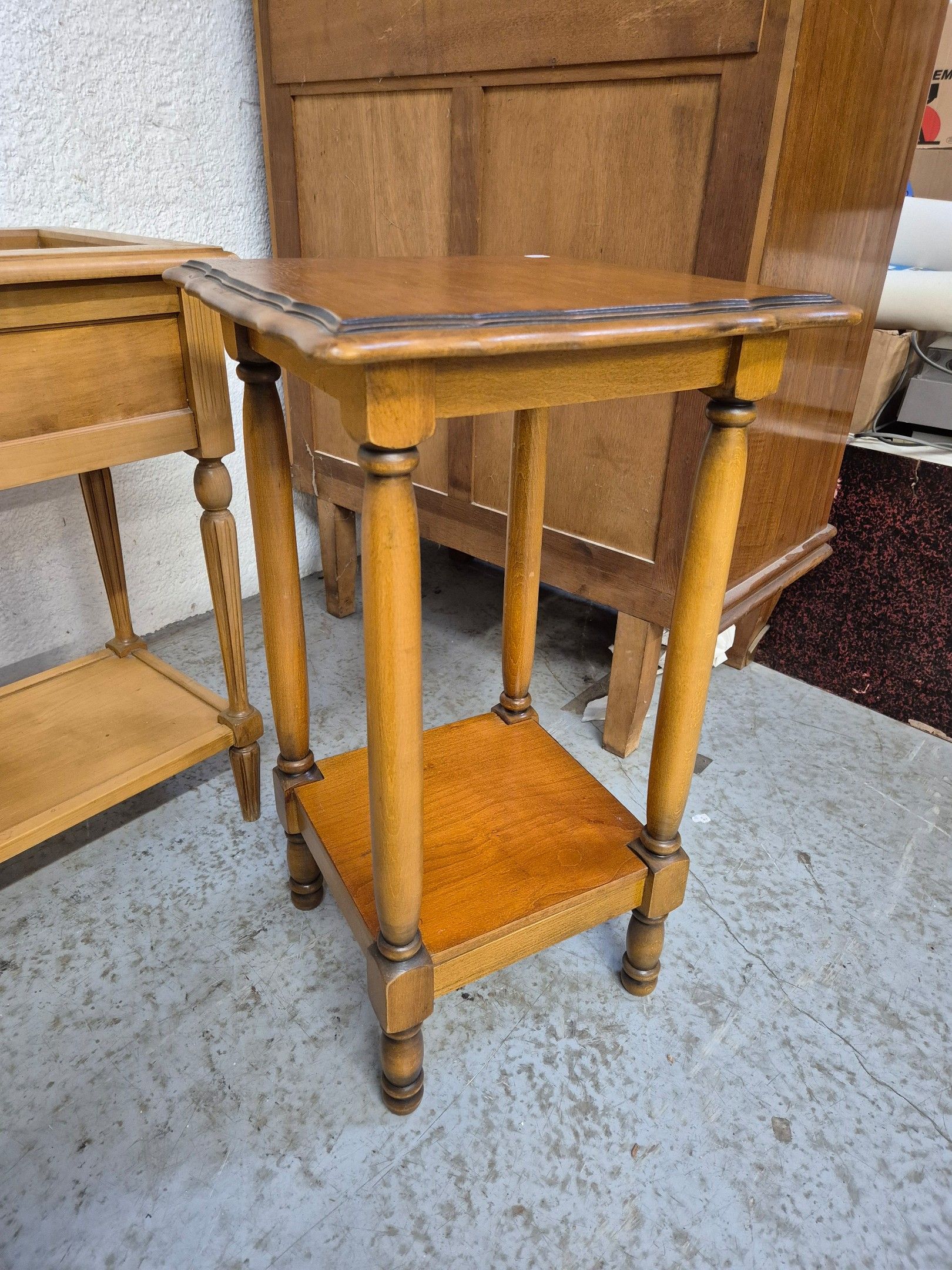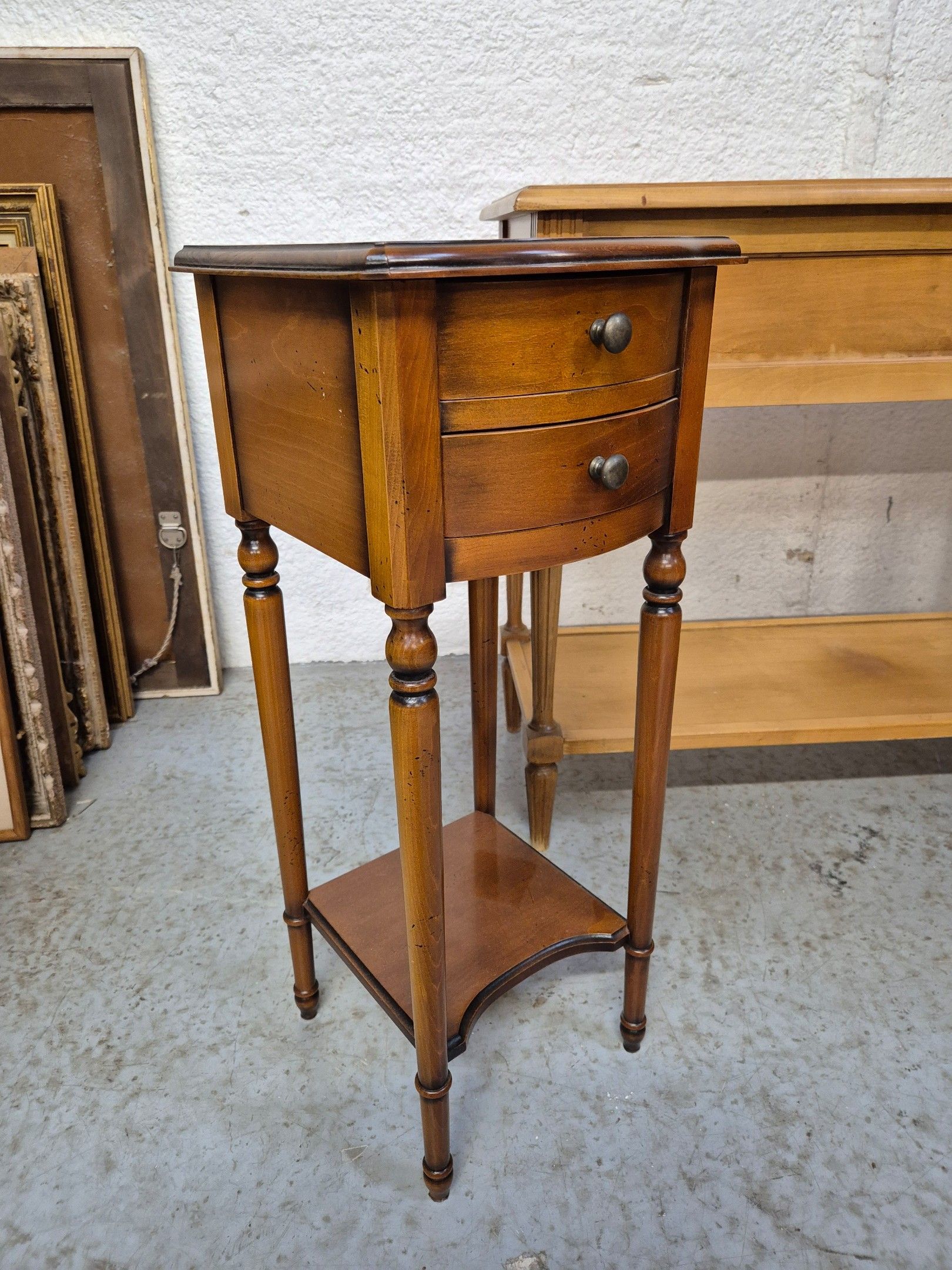 1 cherrywood 2-drawer bedside cabinet (66x26x27 cm) and 1 turned wood sellette (70x40x40 cm).
