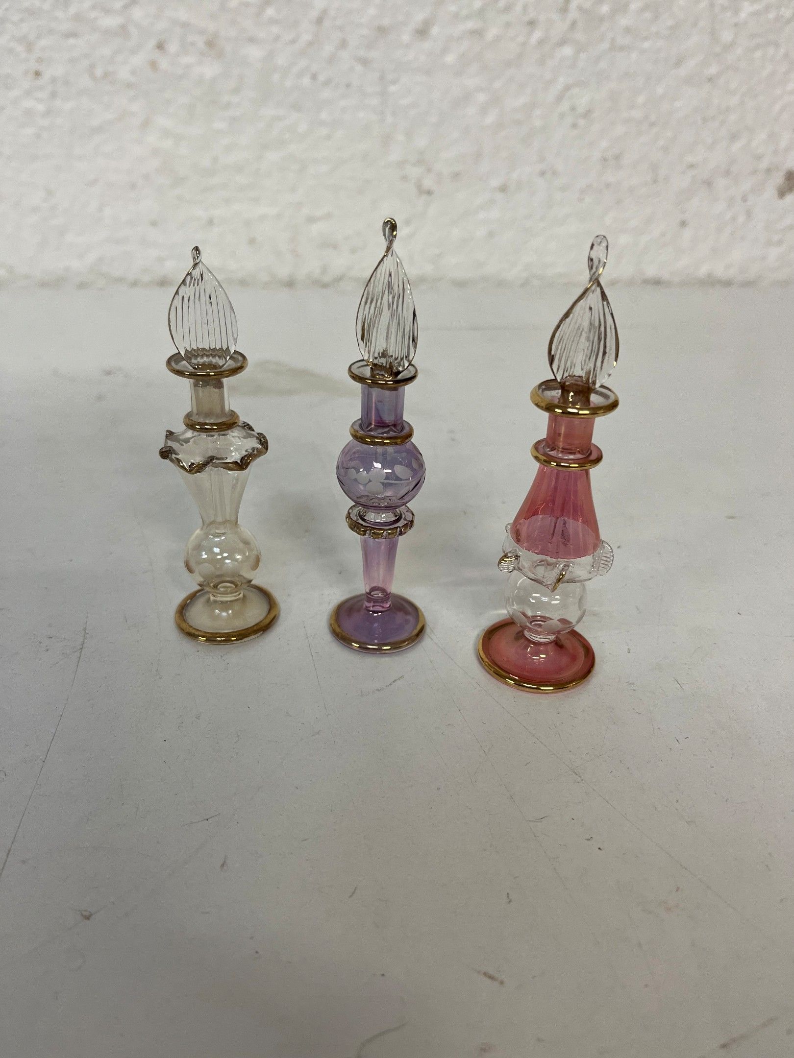 J / Set of glass perfume bottles: three "Egyptian" bottles a…