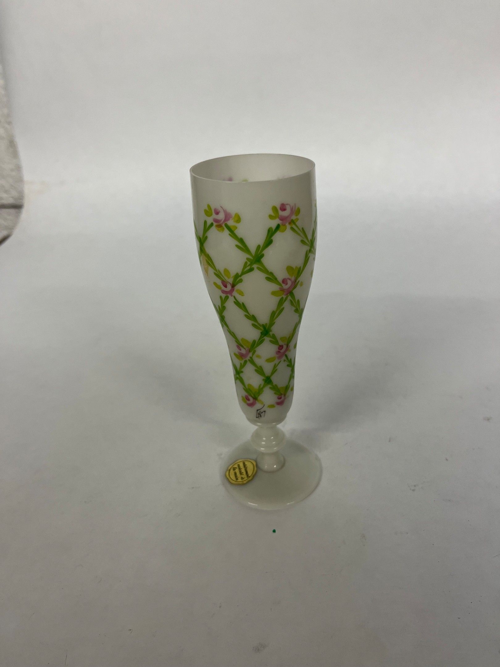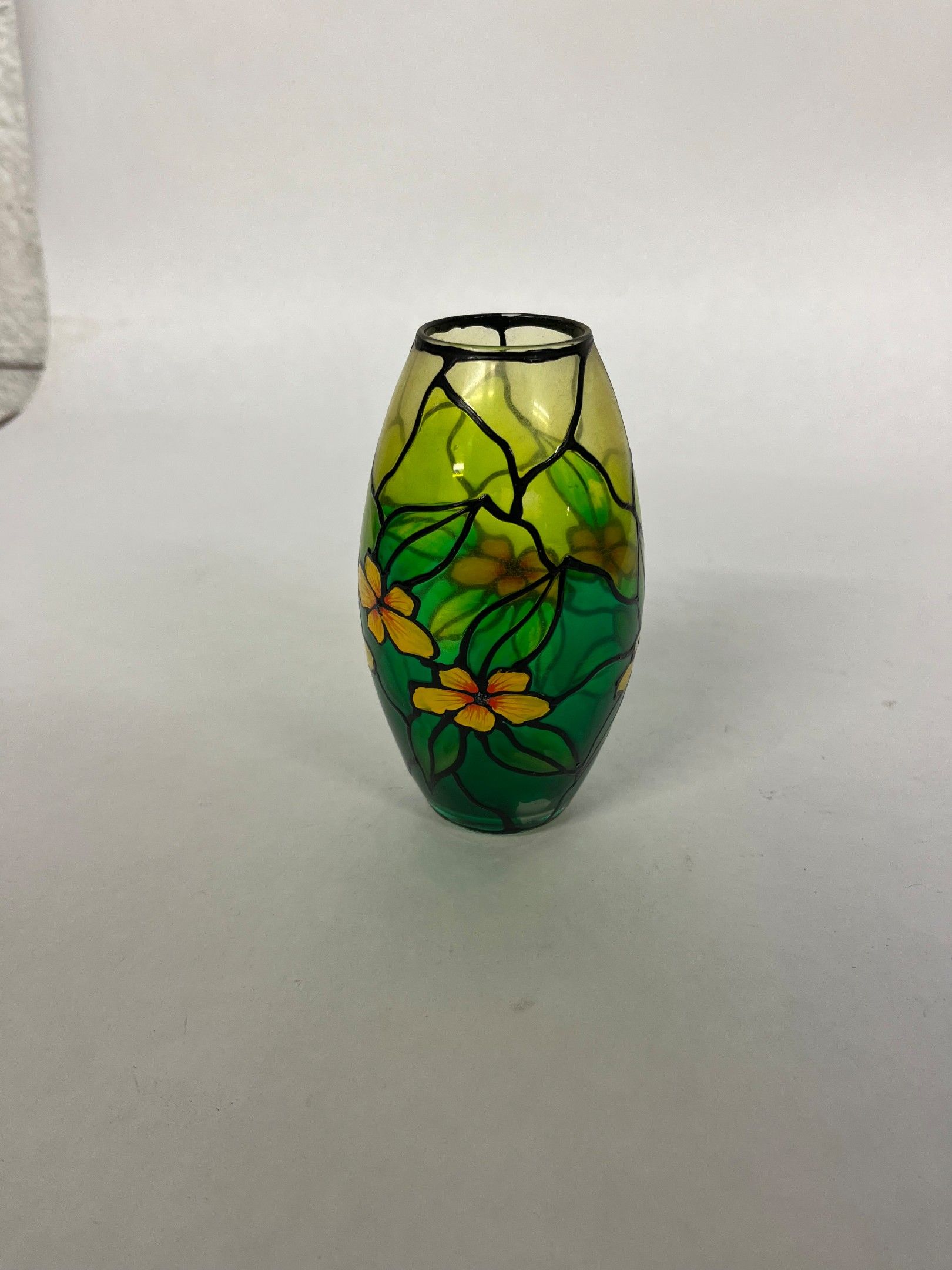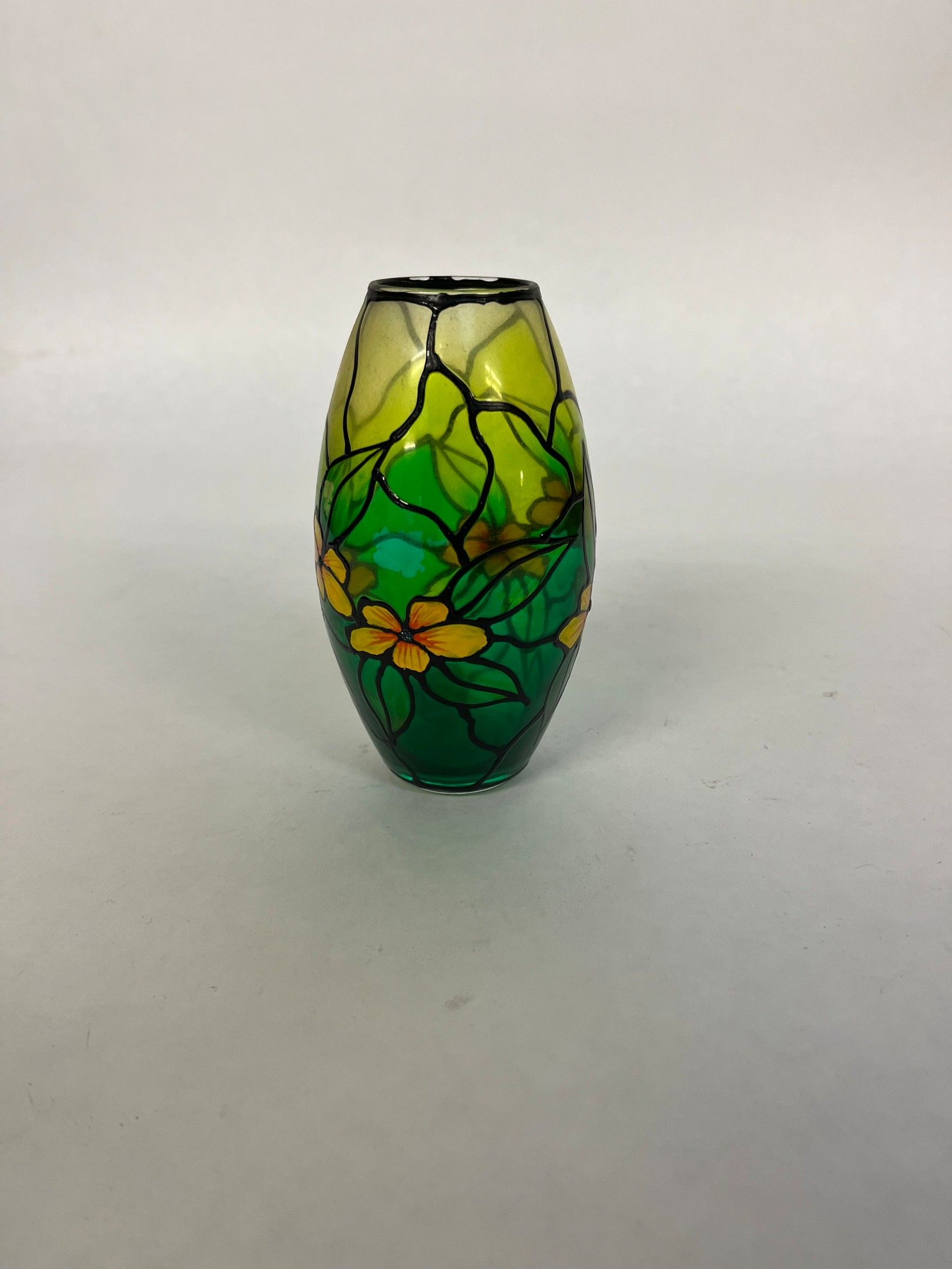 - A coloured and painted resin vase simulating a cloisonné design with a floral motif
