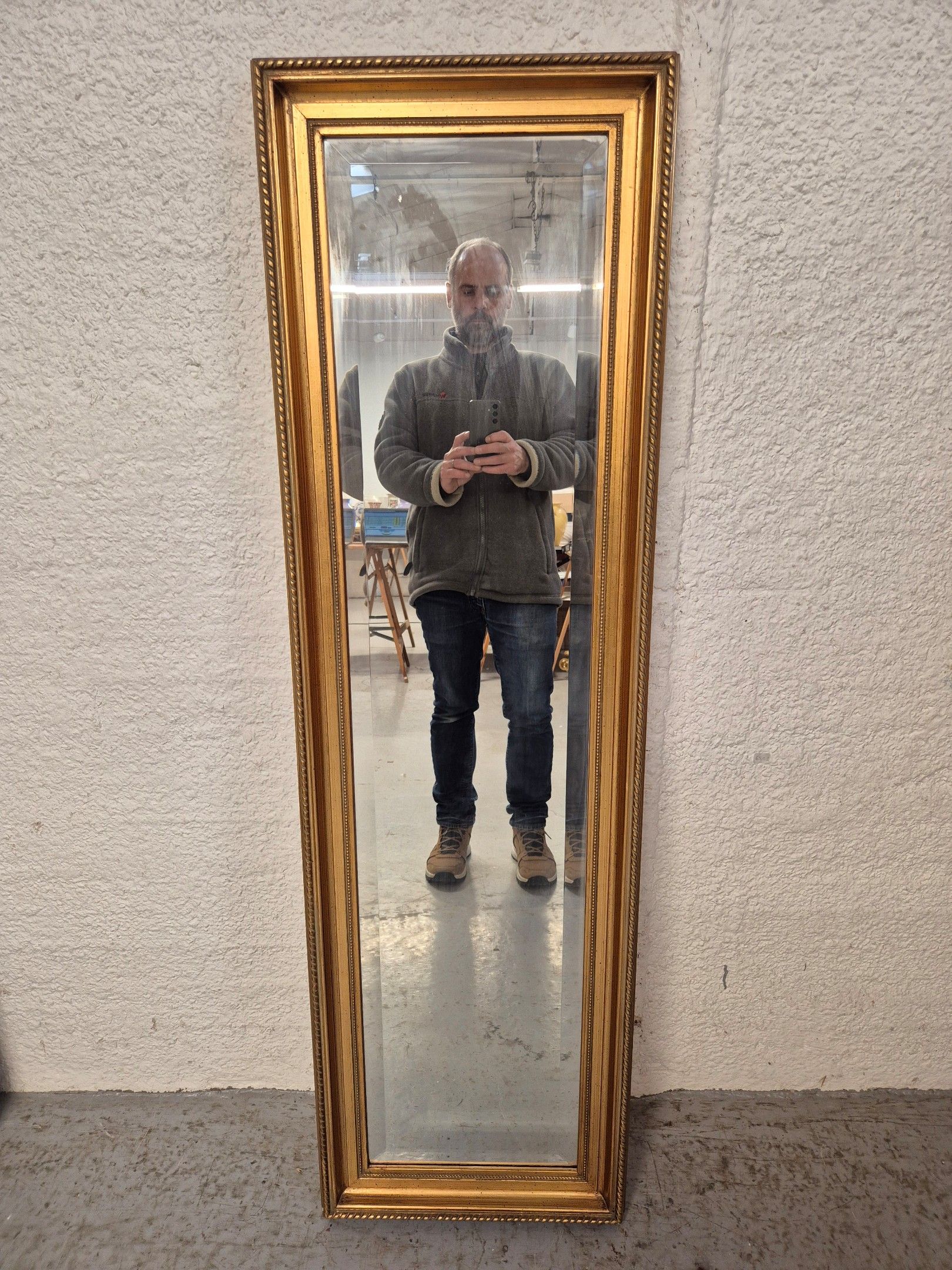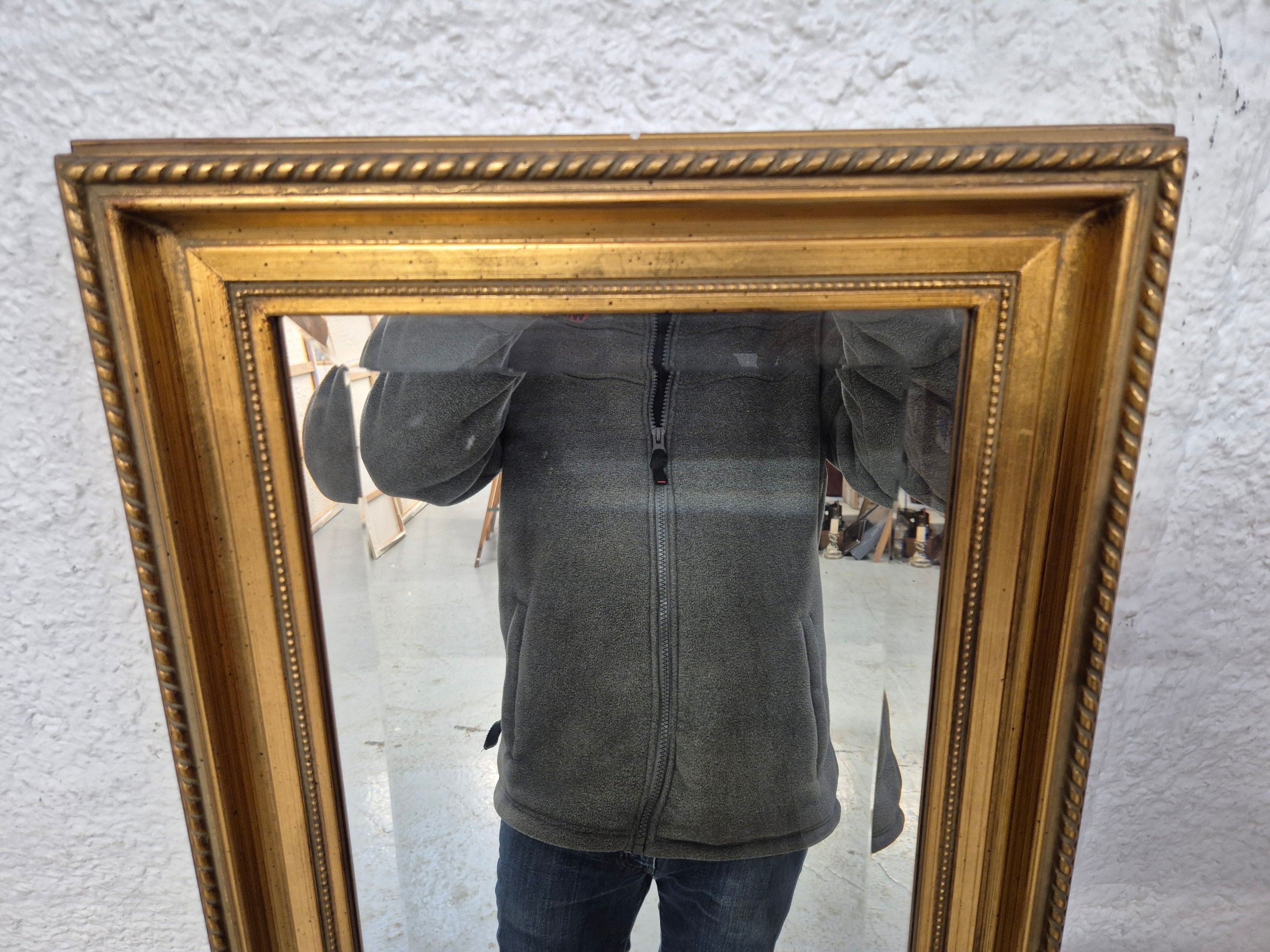 J/ A gilded wood hall mirror decorated with a frieze of pearls and twists.