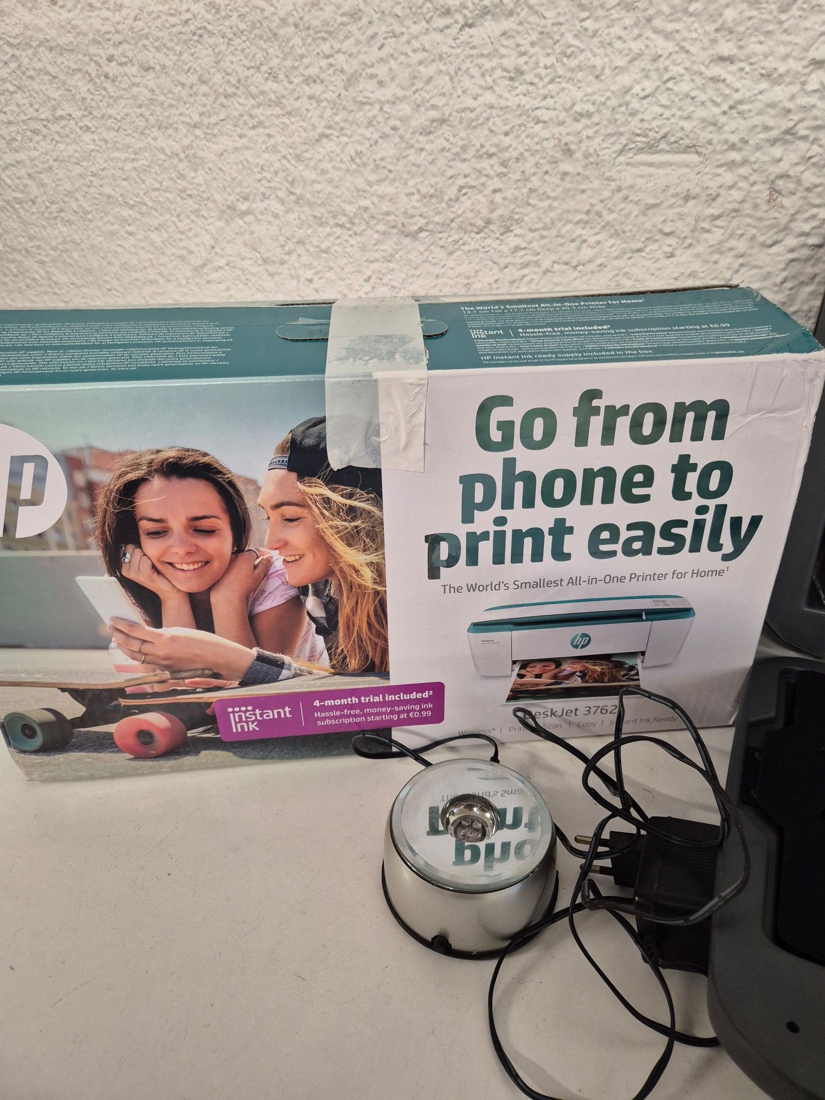 J/ JVC GR 60 camcorder in case, HP Deskjet 3762 printer and …