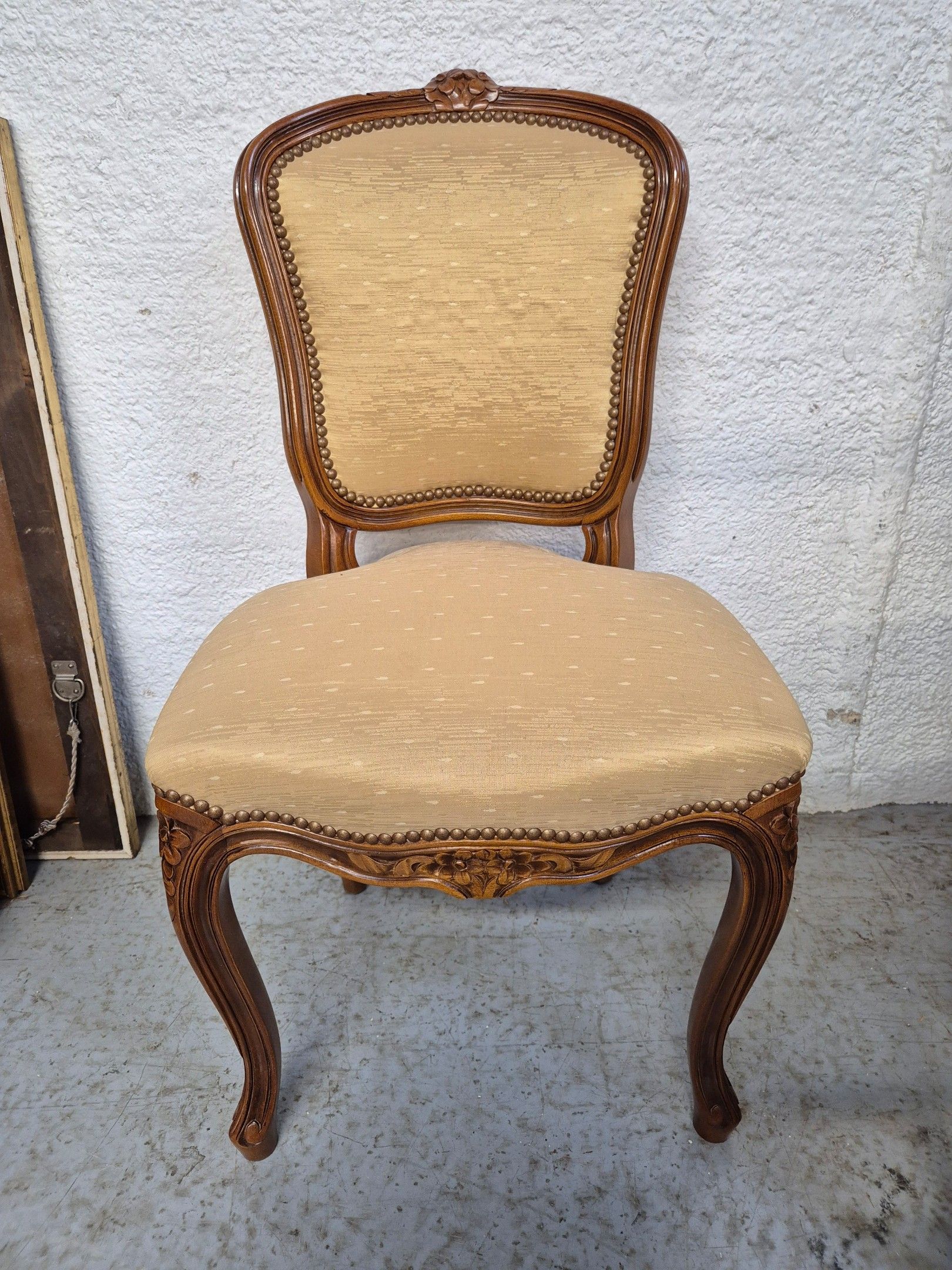 J/ Louis XV style cherrywood chair upholstered in yellow fab…