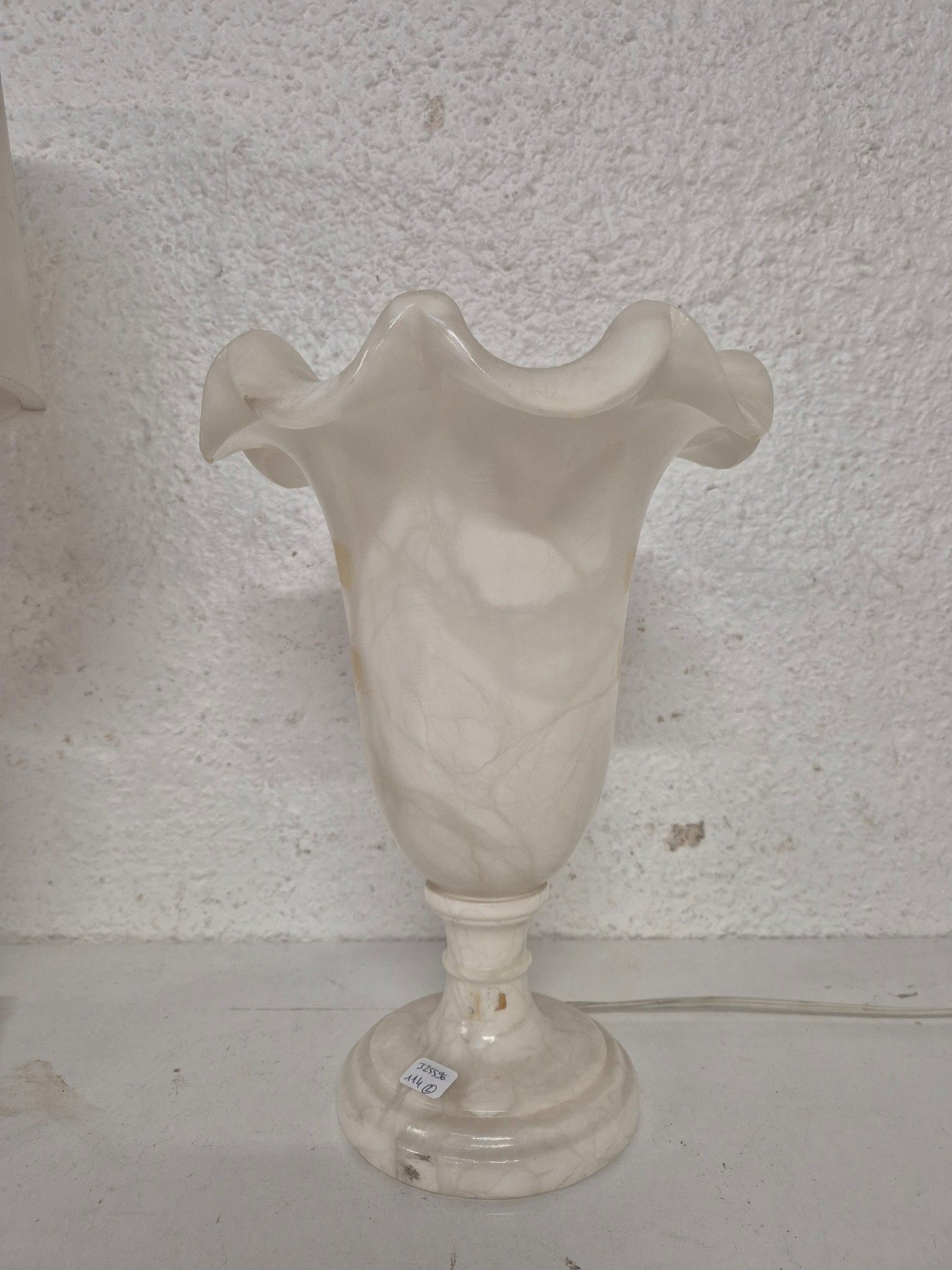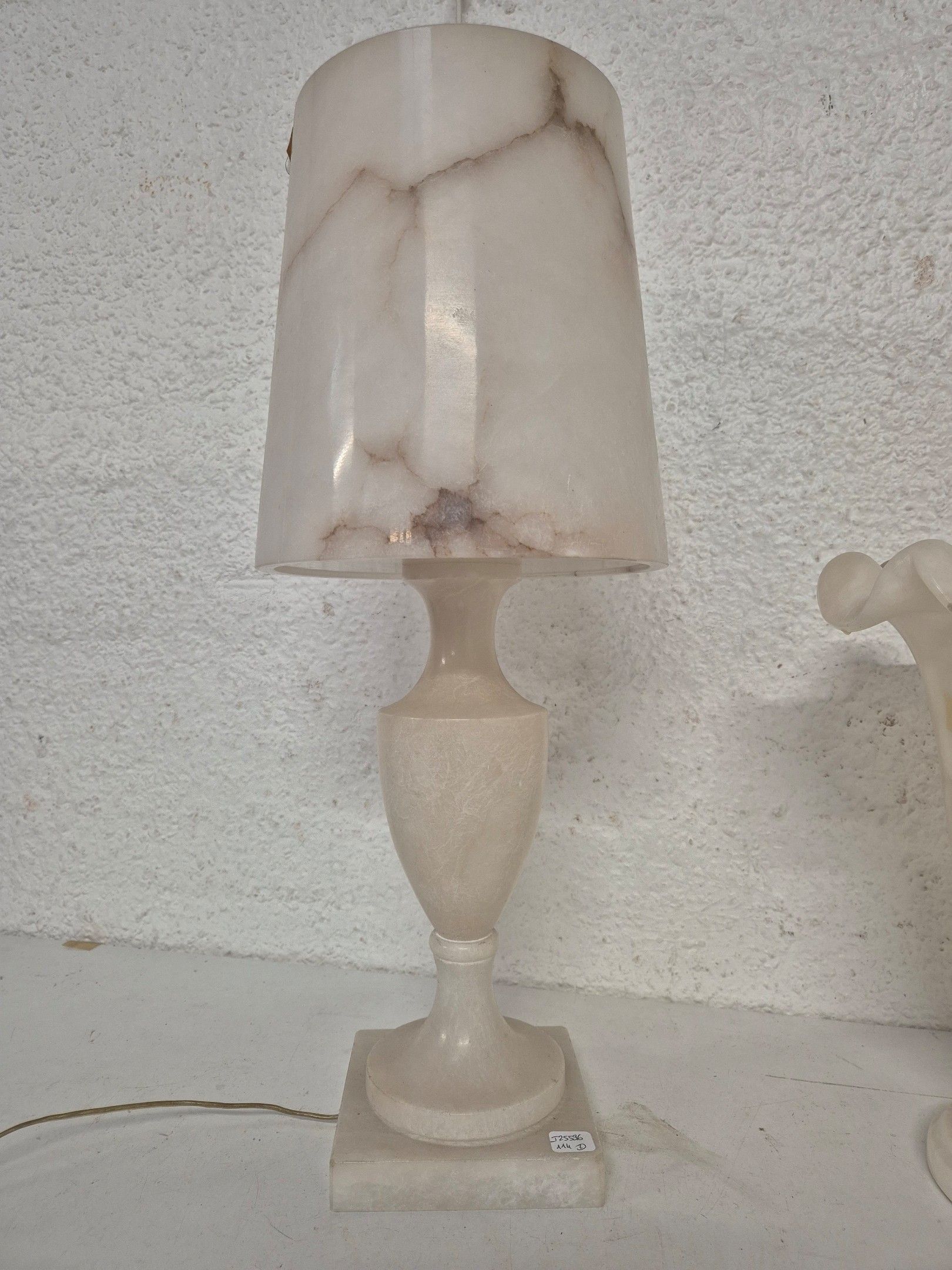 J/ An alabaster lamp and a marble and alabaster corolla vase.