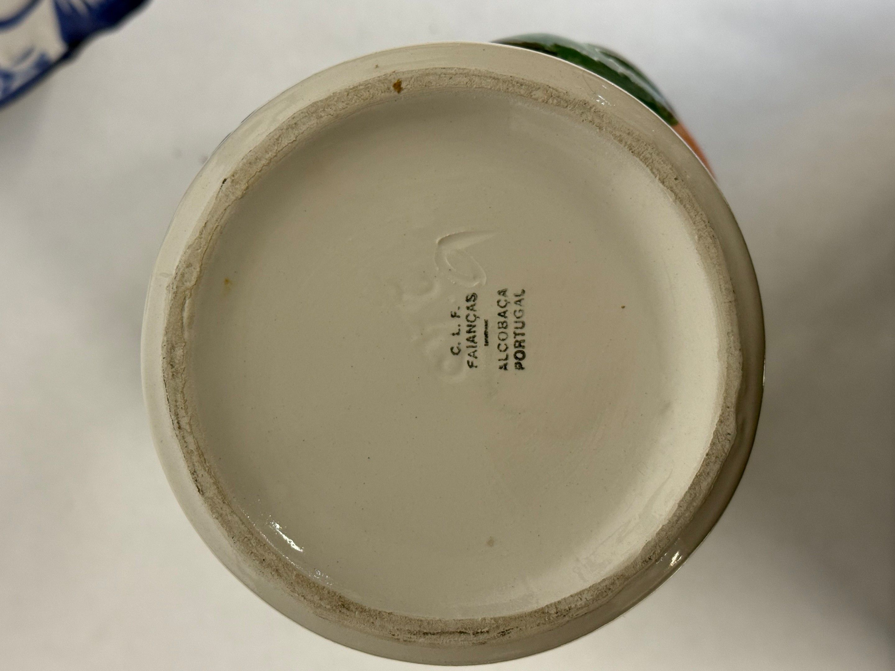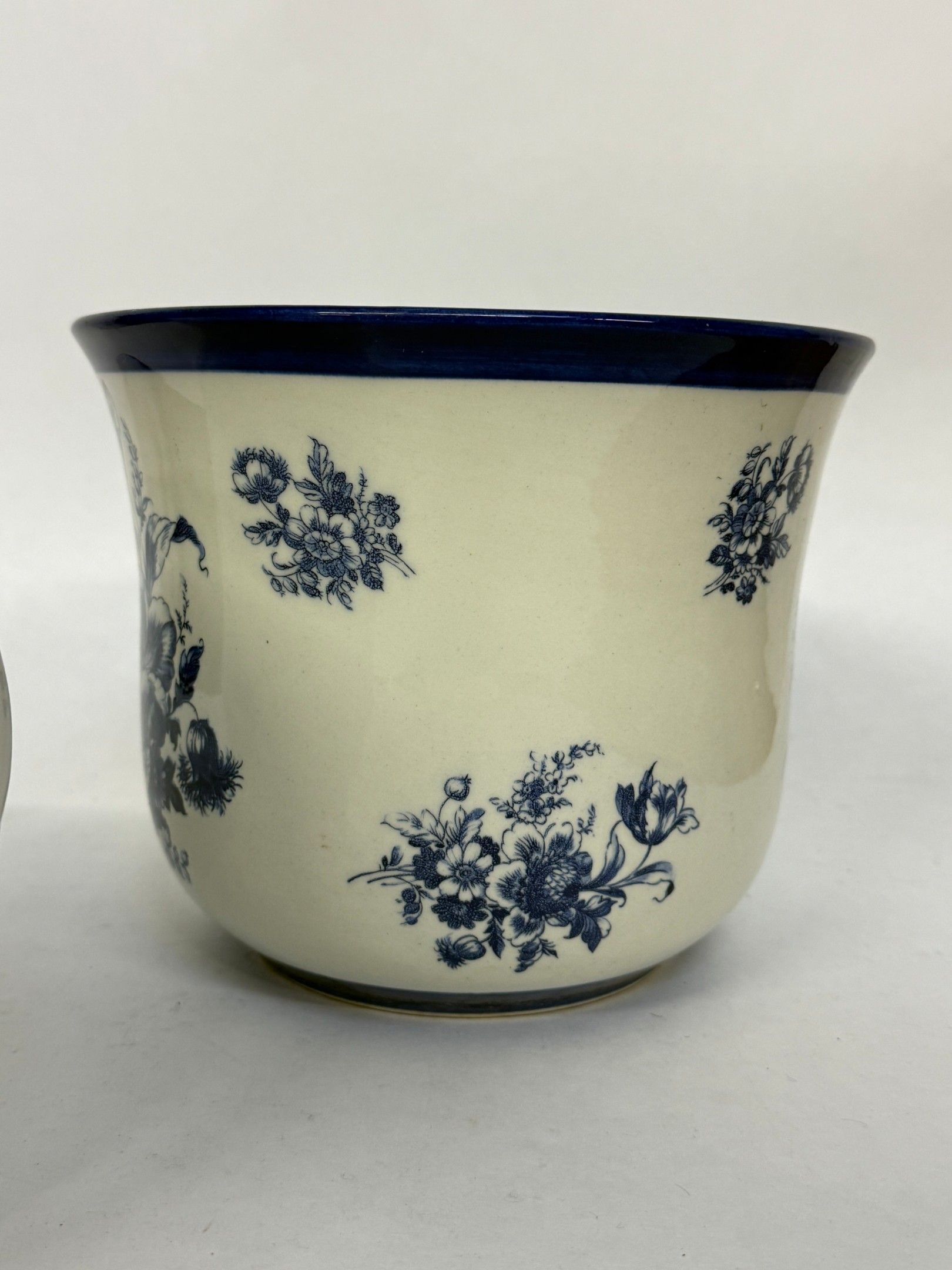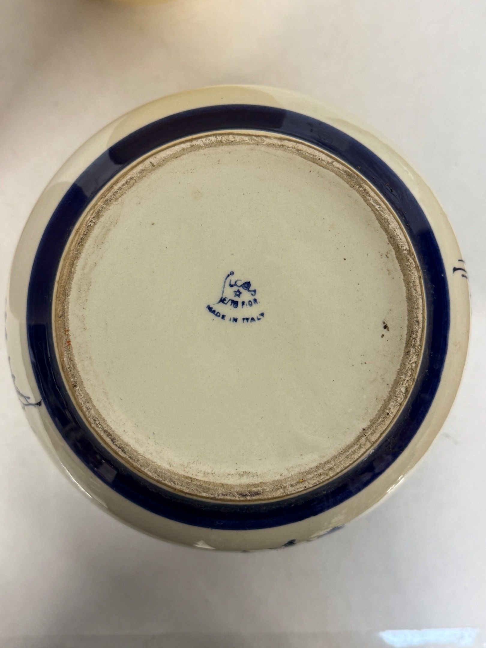 - Italian blue and white earthenware pot cover from the Jicas Esto Fior factory.