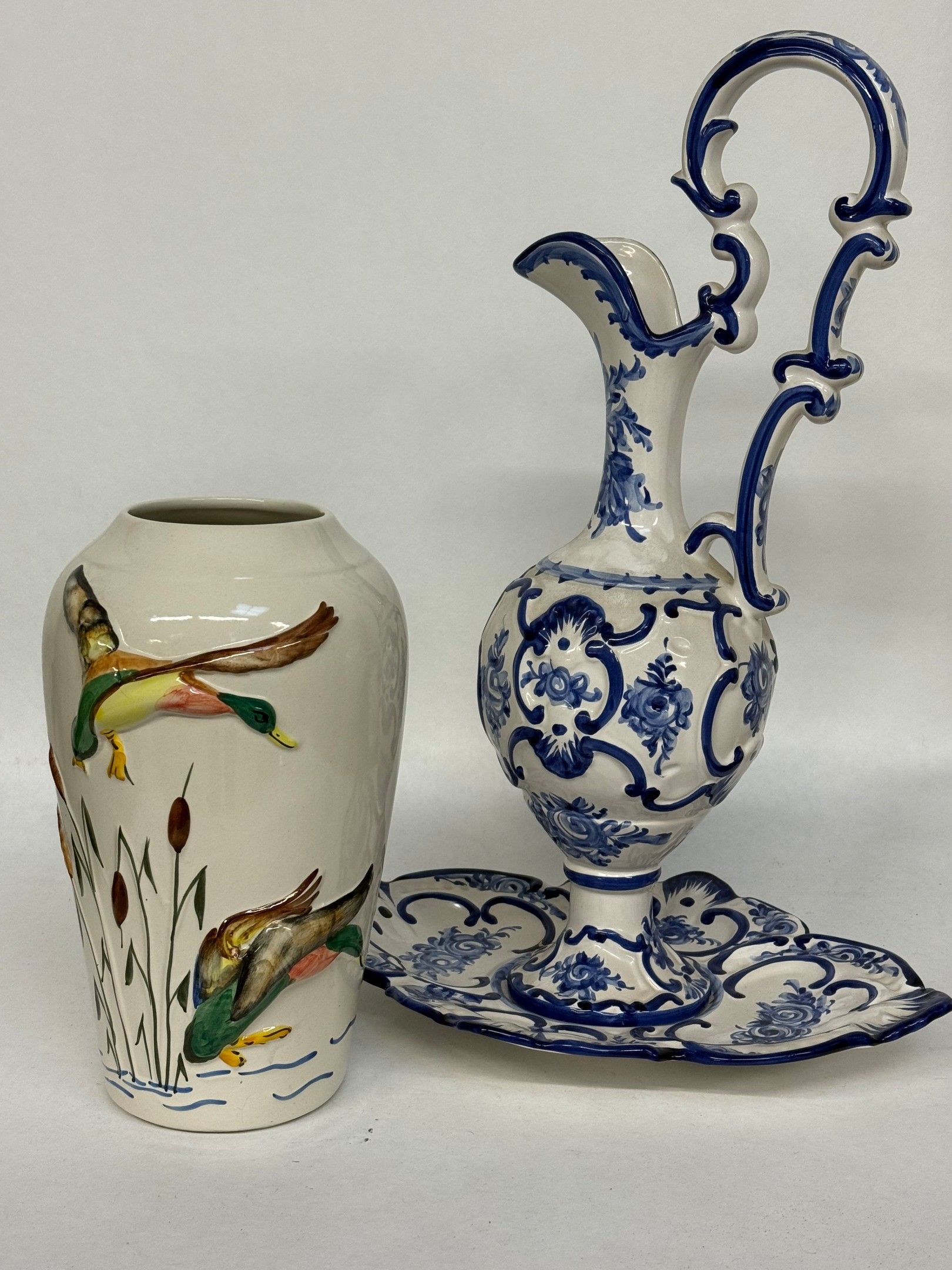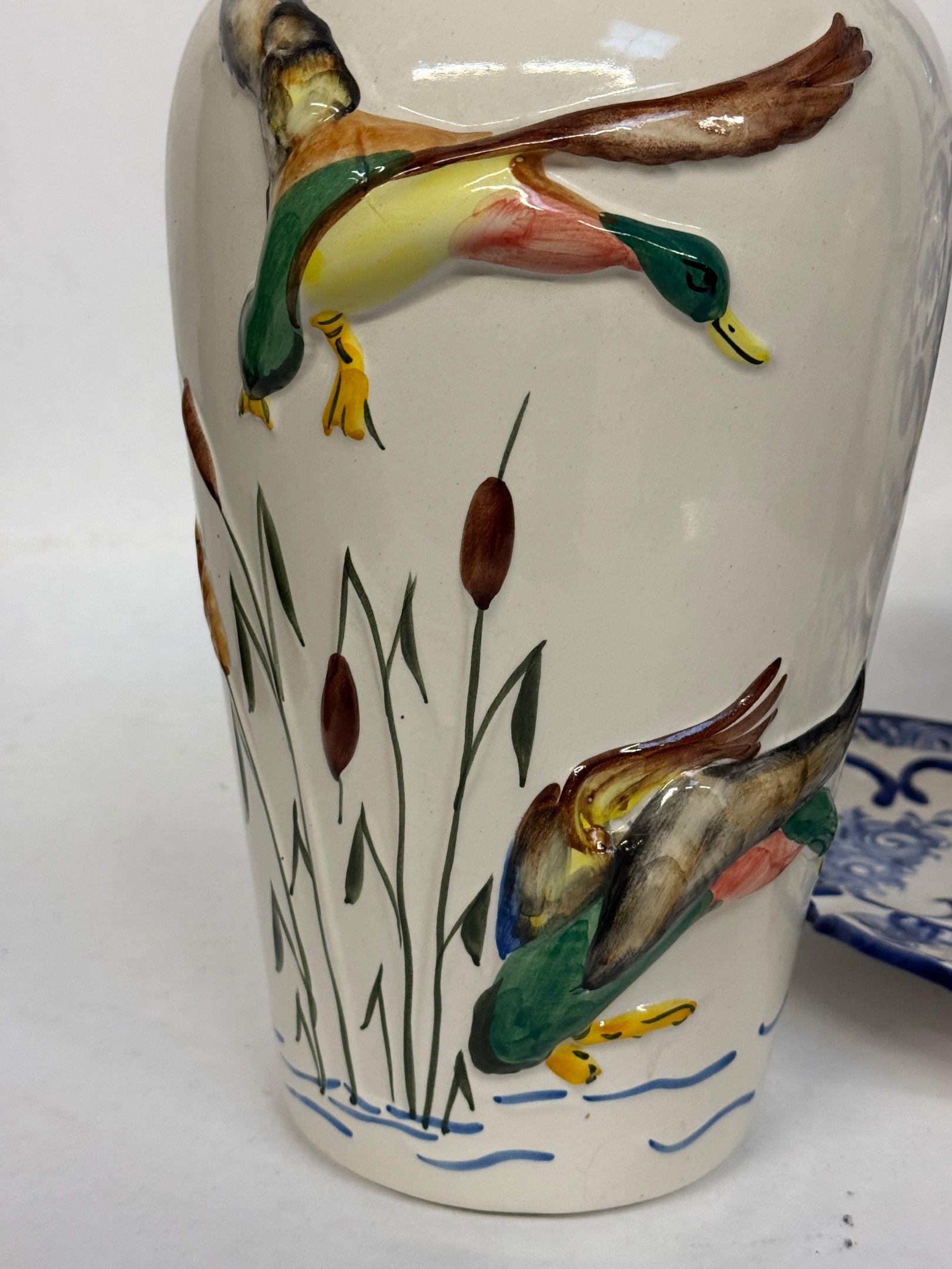 - Earthenware vase decorated with wild ducks from the Alcobaca factory, Portugal.