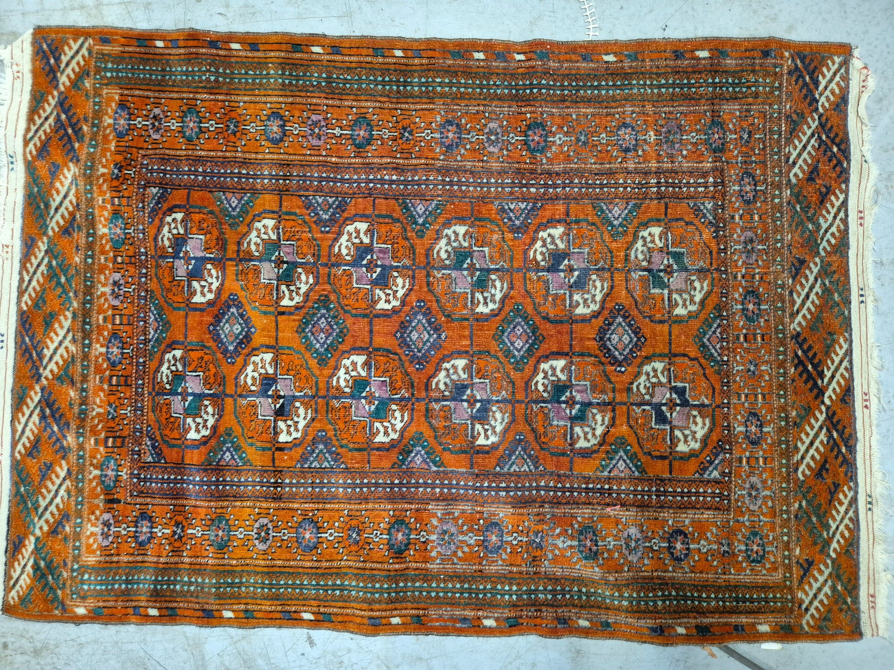 J/ 3 Oriental style woollen carpets including 1 carpet with …