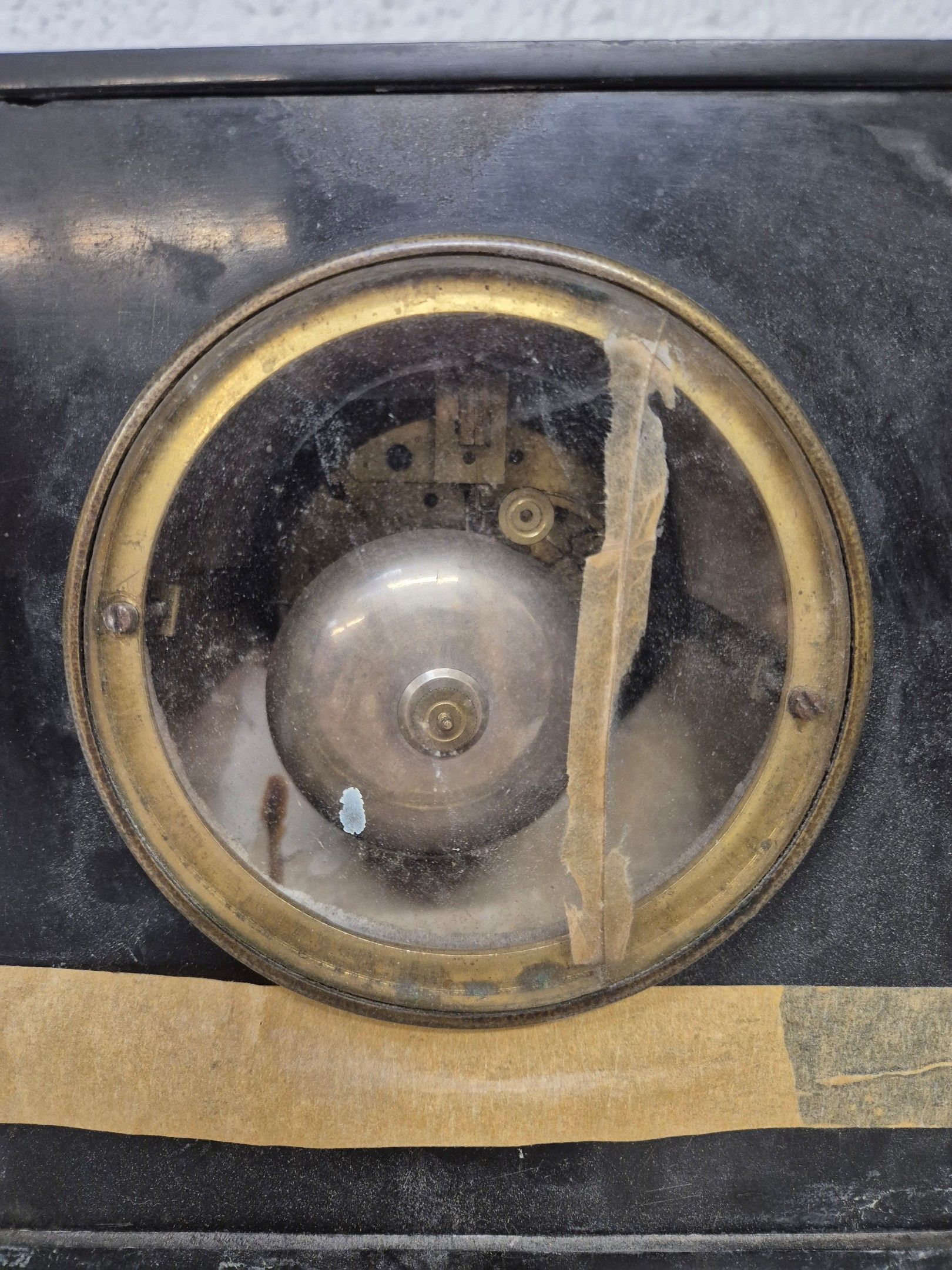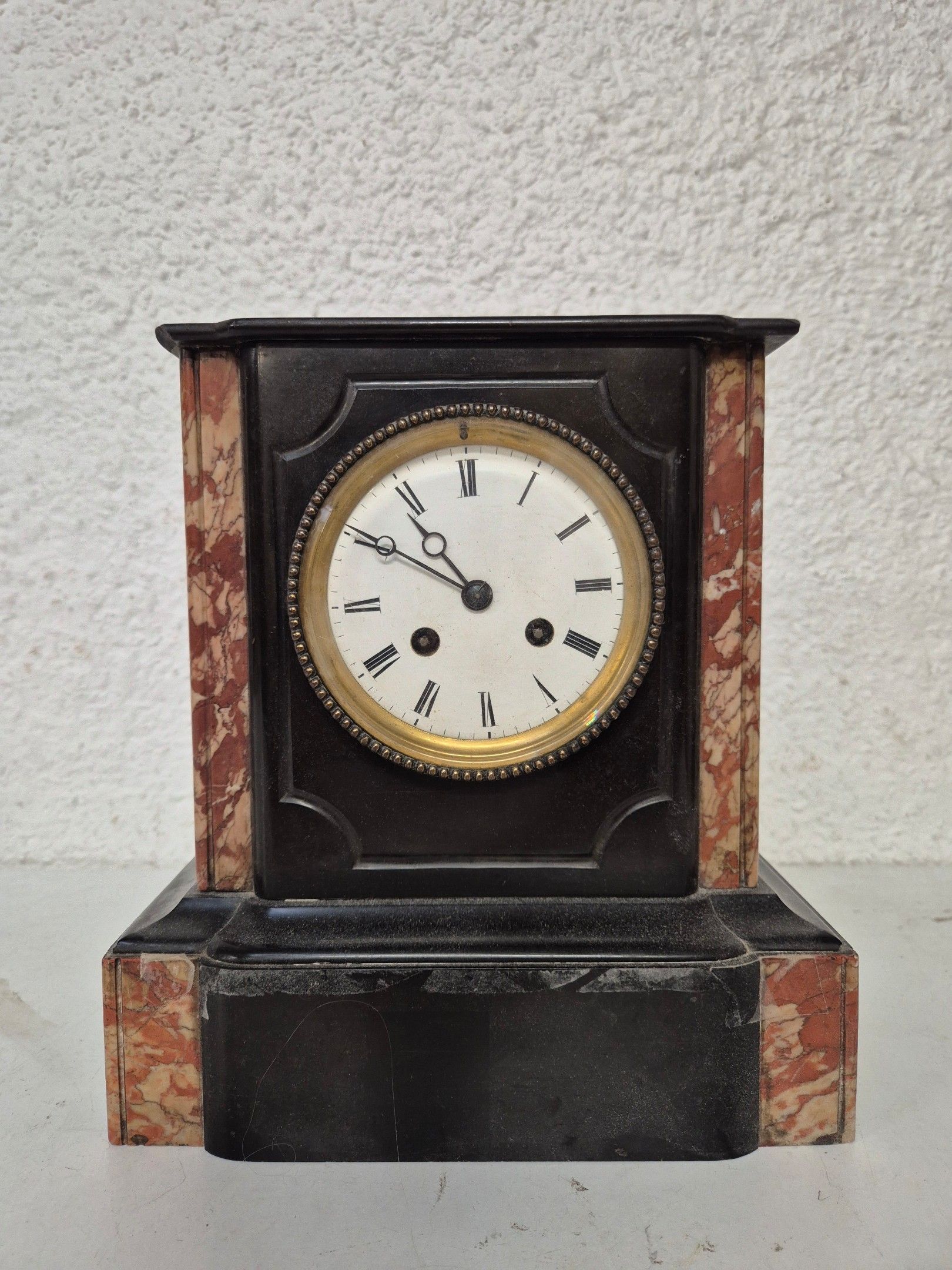 J/ Black and red marble terminal clock, 26x24x14 cm. Shine