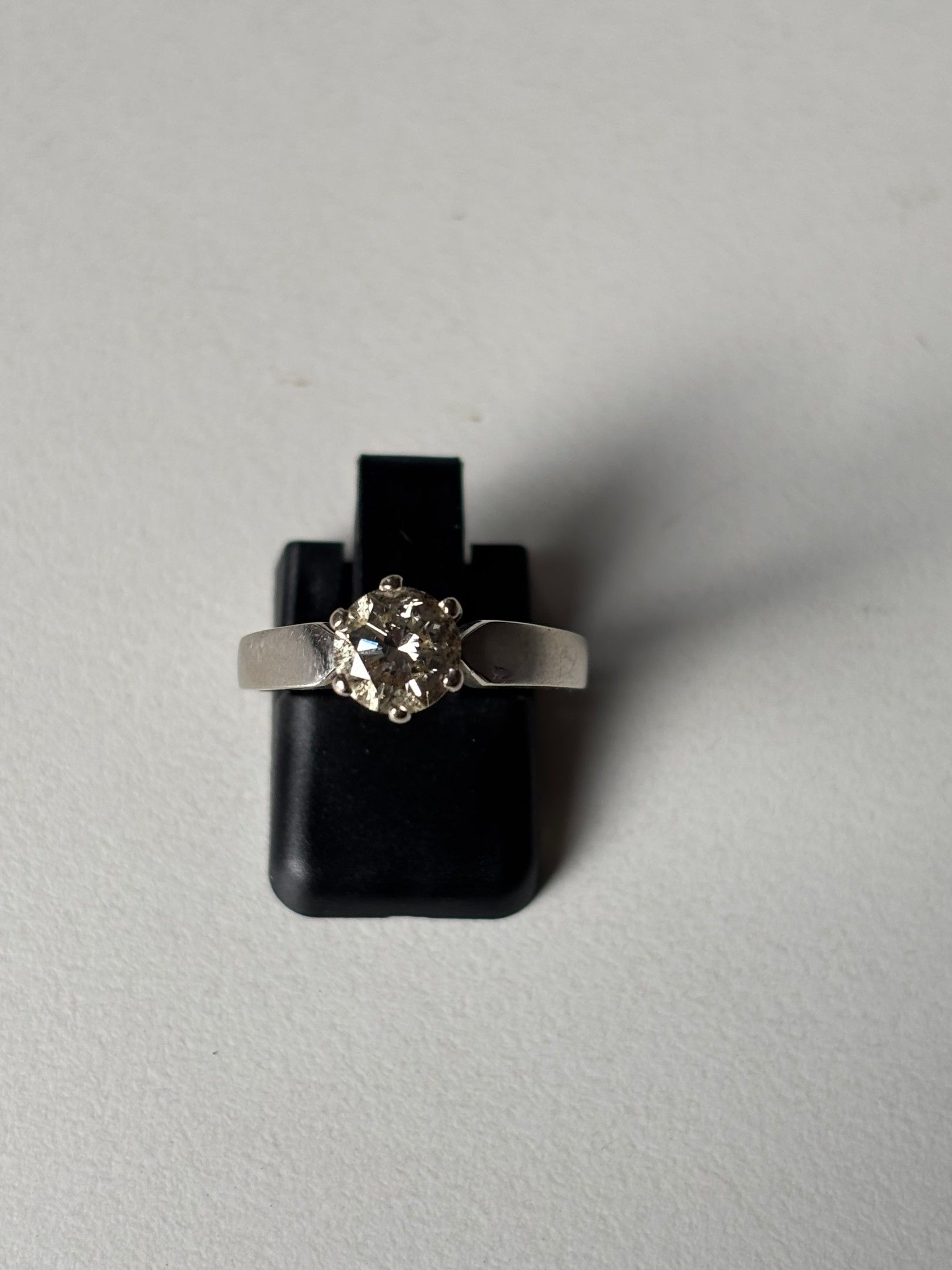 Solitaire ring in platinum set with a diamond weighing approximately 1 carat. Gross weight 3.7 g