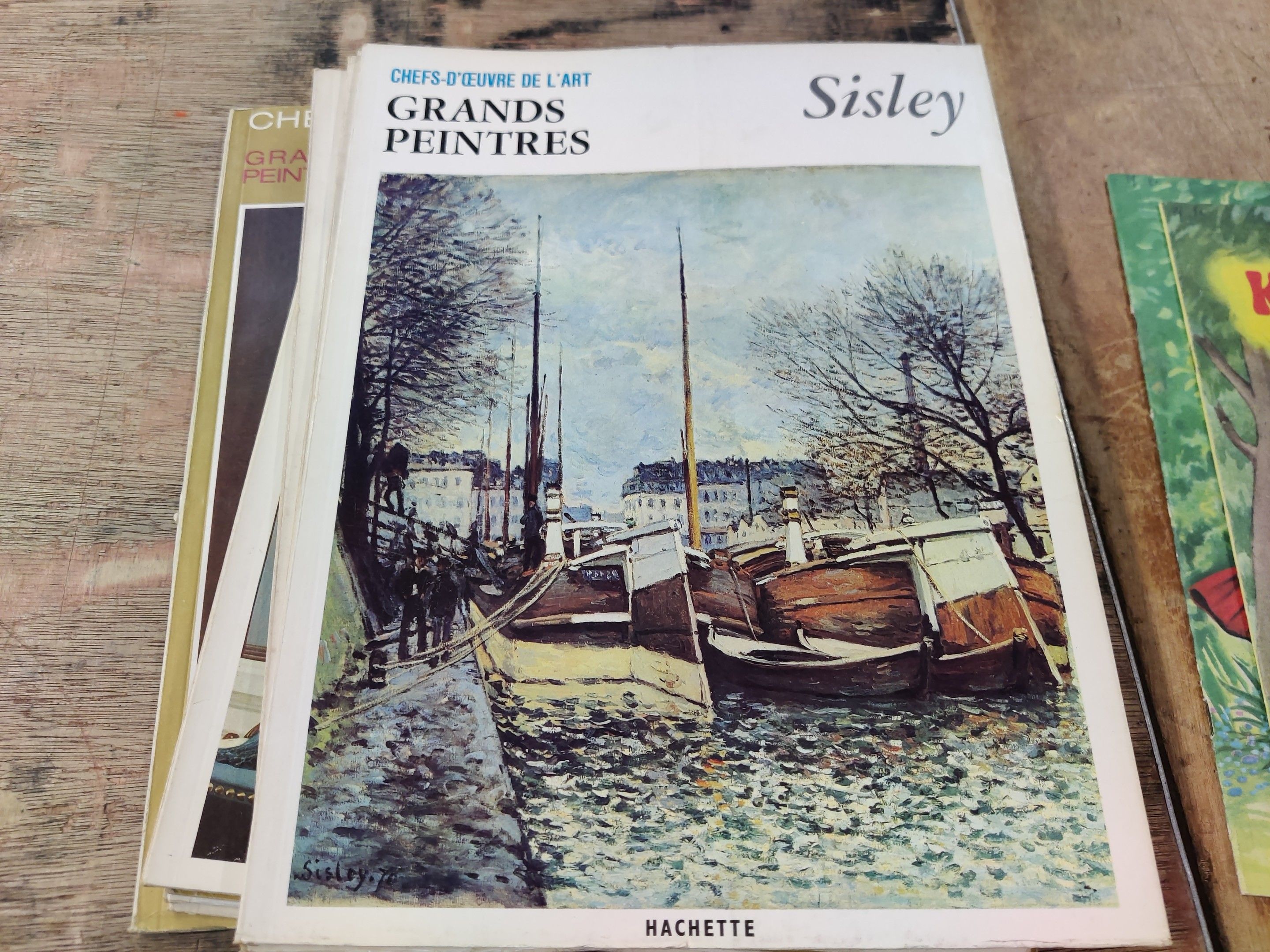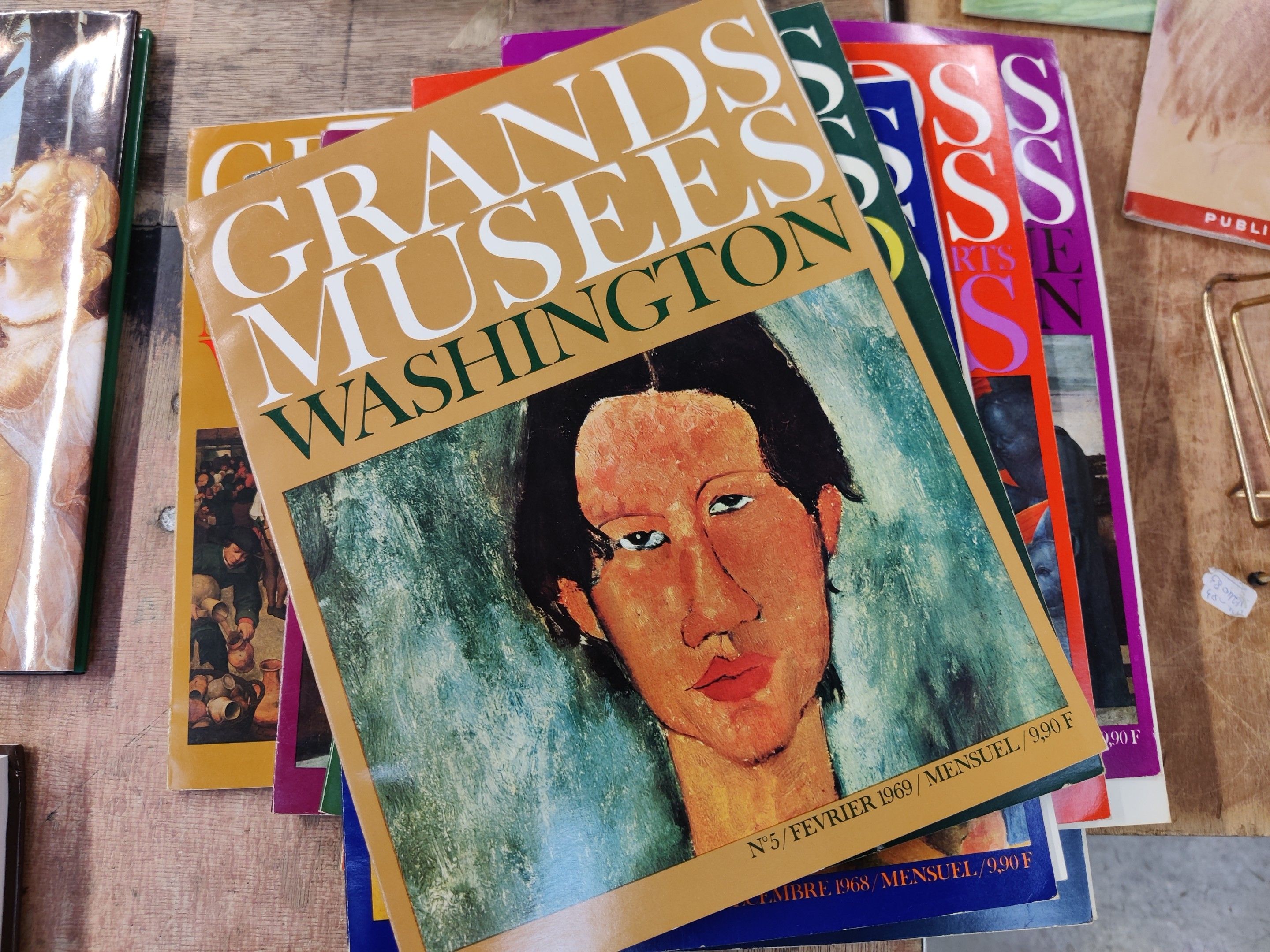 Box of art magazines including Grands Musées, Grands peintres. Includes 2 art books: Botticelli and Velasquez