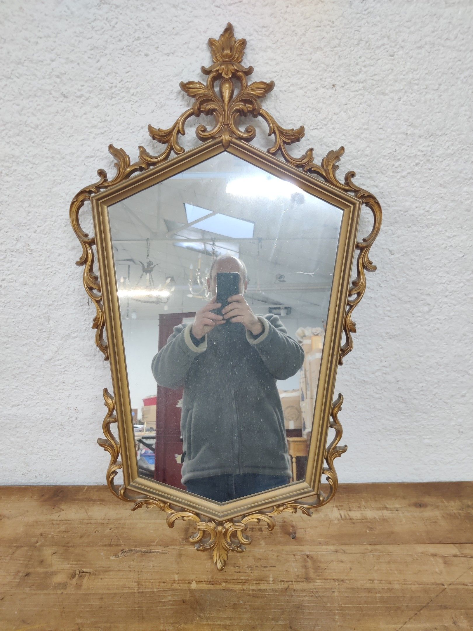 Gilded plastic mirror, 91x51 cm and 1 photographic reproduct…