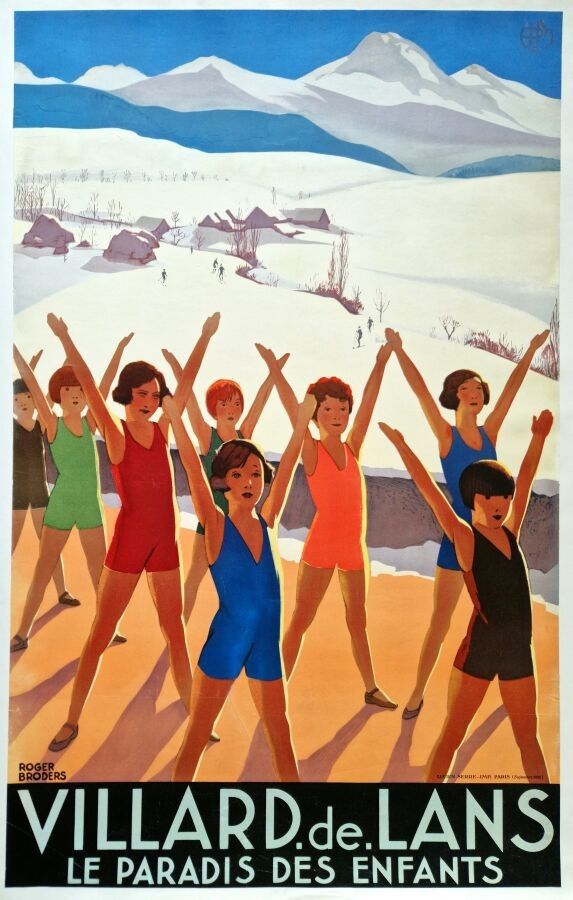 Tourism - Roger Broders (1883-1953) - Villard de Lans, The Children's Paradise. 1930. Printer Lucien Serre, Paris. 99x62cm. Original poster, lithograph, canvas-backed. Condition A-, traces of tears and canvas defects.