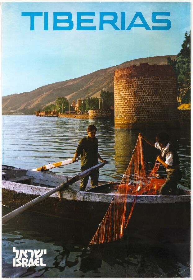Tourism - David Rubinger (1924-2017) - Tiberias, Israel. Circa 1955. Printer, United artists, Tel Aviv, Israel. 98.5x68cm. Original poster, offset, not canvas-backed. Condition A-, marginal tears. Exceptional photograph printed by the Israeli Ministry of Tourism. Established around 26 AD by Herod Antipas, a descendant of Herod the Great, the city was named in honour of the emperor Tiberius. It is mentioned in the New Testament, particularly in the Gospel of John 6:23.