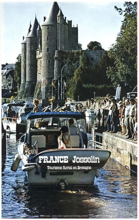 Tourism - Cl. Rives (1947-2023) - France, Josselin, River tourism in Brittany. Circa 1955. Printer, Hélio, Cachan, Paris. 99x62cm. Original poster, offset, not canvas-backed. Condition A-, traces of creasing in the margins. Claude Rives, who was born on 11 April 1947 in Angers and died on 24 February 2023 in Vendôme, was a French reporter-photographer specialising in underwater photography. He is regarded as one of France's pioneers in the field of underwater photography, and took part in scientific missions in all the world's oceans. An expert in deep diving, many of his research projects are rooted in long-term observation, leading him to tackle themes as diverse as the decline of coral reefs, oil-related disasters, the wrecks of the Second World War and the preservation of the environment in National Parks.