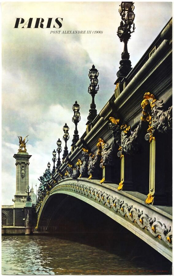 Tourism - Hinous (XX) - Paris, Pont Alexandre III. Circa 1970. Printer, Draeger, Paris. 99x62cm. Original poster, Draeger process, not canvas-backed. Condition A. The low-angle shot magnifies the monument built for the 1900 Universal Exhibition.