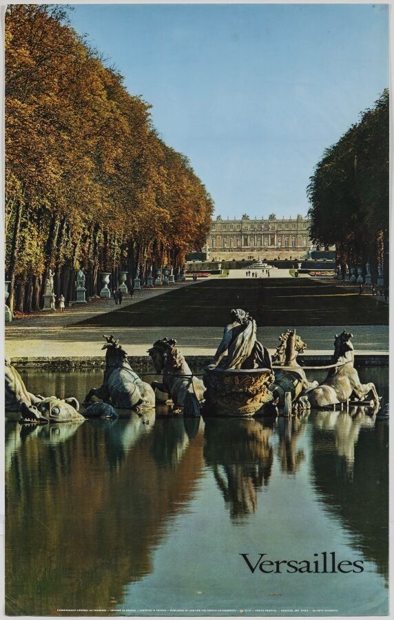 Tourism - Philippe Fronval (XX) - Versailles. Circa 1955. Printer, Draeger, Paris. 99x62cm. Original poster, Draeger process, not canvas-backed. Condition A- marginal tears. Photograph of the fountain of Neptune's chariot in the gardens of the château.