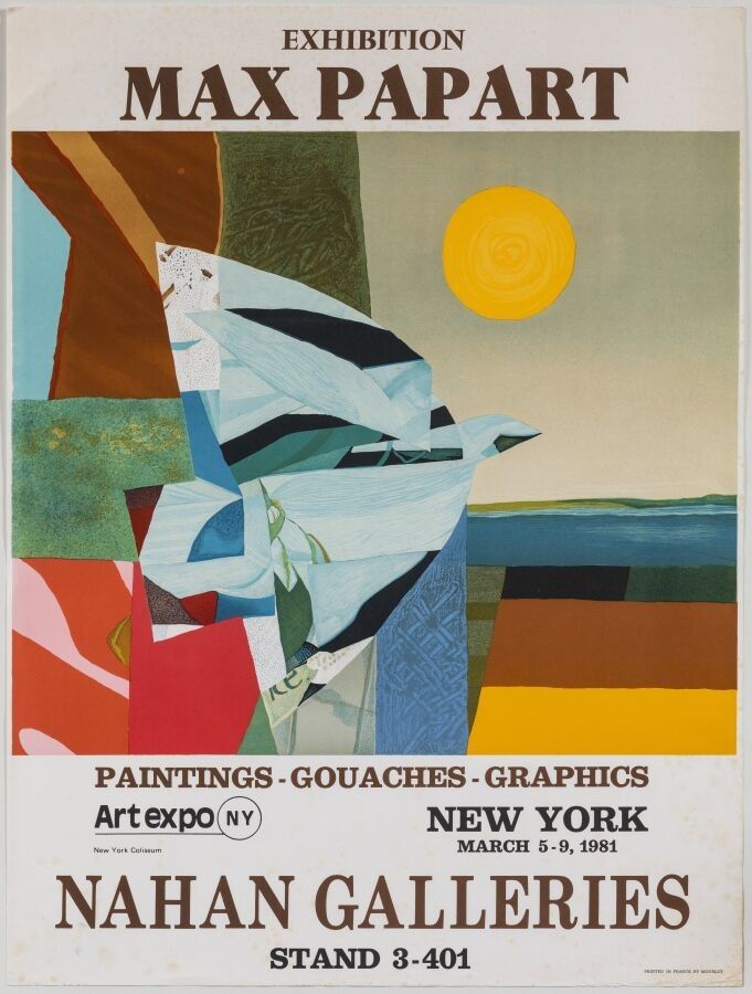 Exhibition - Max Papart (1911-1994) - Exhibition Max Papart, Nahan Galleries. 1981. Printer, Mourlot, Paris. 78,5x59cm. Original poster, lithograph, not canvas-backed. Condition A-, foxing. Lithographic poster published for the New-York artexpo. The poster represents the work "Bird".