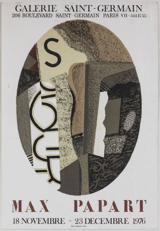 Exhibition - Max Papart (1911-1994) - Max Papart, Galerie Saint-Germain. 1976. Printer, Jobin, Paris. 71x49,5cm. Original poster, lithograph, not canvas-backed. Condition A-, foxing. Lithographic poster published for an exhibition at 206 boulevard Saint-Germain. Max Papart is a Franco-American painter of international stature who has exhibited all over the world and in numerous museums.
