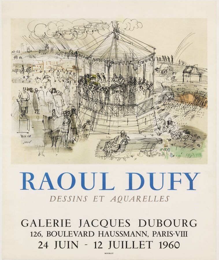 Exhibition - Raoul Dufy (1877-1953) - Raoul Dufy, Galerie Jacques Dubourg. 1960. Printed by Mourlot, Paris. 59x49cm. Original poster, lithograph, canvas covered. Condition A. The lithograph is signed in the plate.