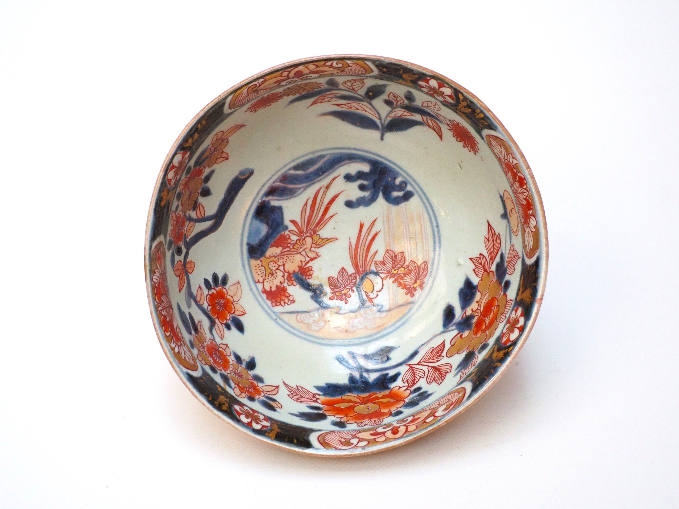 Heeled porcelain bowl with blue, red and gold Imari decoration of flowering branches in reserves