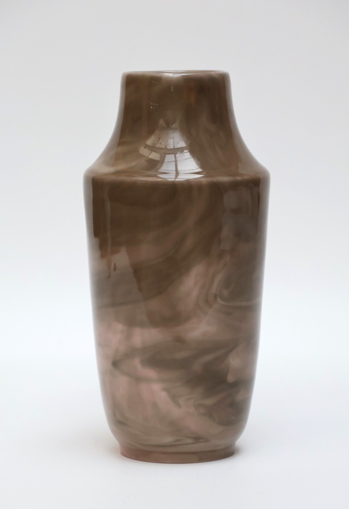 Hard porcelain cylindrical vase with shoulder and narrow neck with grey marbled decoration, signed